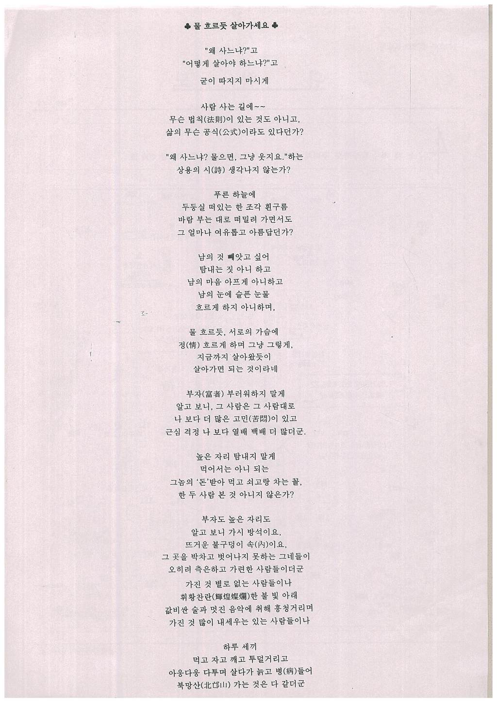 물 흐르듯 살아가세나. 작성자최욱순|작성시간19.02.09|조회수16 목록 댓글 2 글자크기 작게가 글자크기 크게가 다음검색 현재 게시글 추가 기능 열기 북마크 공유하기 신고 센터로 신고 댓글 댓글 2 댓글쓰기 답글쓰기 댓글 리스트 작성자이규식 | 작성시간 19.02.11 참으로 좋은 글이네..우리네들 얼마남지 인생 아웅다웅 살지 말고 서로 자주 만나 소주 한잔 나누면서옛 추억을 새기면서 살았으면~~~ 답댓글 작성자최욱순 작성자 본인 여부 작성자 | 작성시간 19.02.13 좋은 일이라오, 4월달에 동기회 모임이 있지,그때보자구나.... 댓글 전체보기