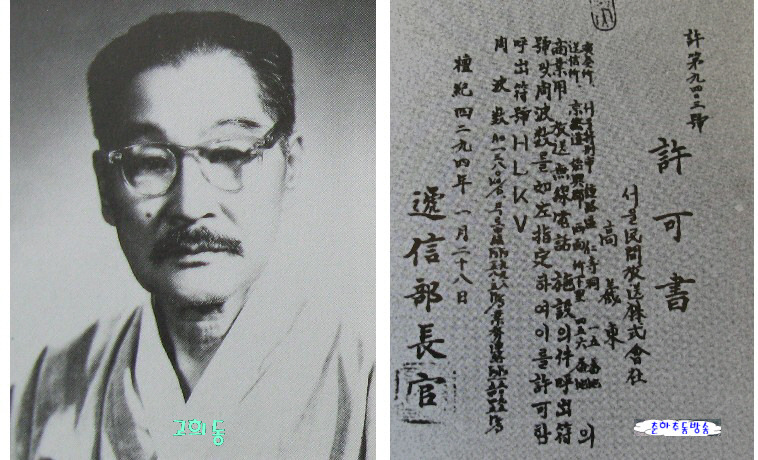 문화방송(MBC)이라는 명칭을 사용 할수 있게되자 그 이름으로 1961년 12월 2일부터 호출부호 HLKV, 주파수 900KHz, 출력 10Kw의 문화방송이 첫 방송을 내 보냈습니다. MBC 초대 회장은 고희동이고 사장은 실질적인 주주 김지태였습니다. 고희동은 구한말 벼슬을 지내고 서양화가로 참의원을 지내는 등 장면정부와 가깝게 지내면서KBS에 다니던 사위와 방송국을 차려 보려던 생각으로 방송국 설립 허가를 냈지만 방송국 설립은 그리 쉬운일이 아니어서 김지태측과 절충끝에 김지태가 MBC의 사장으로 경영주가 되면서 고희동은 회장이 된것입니다.