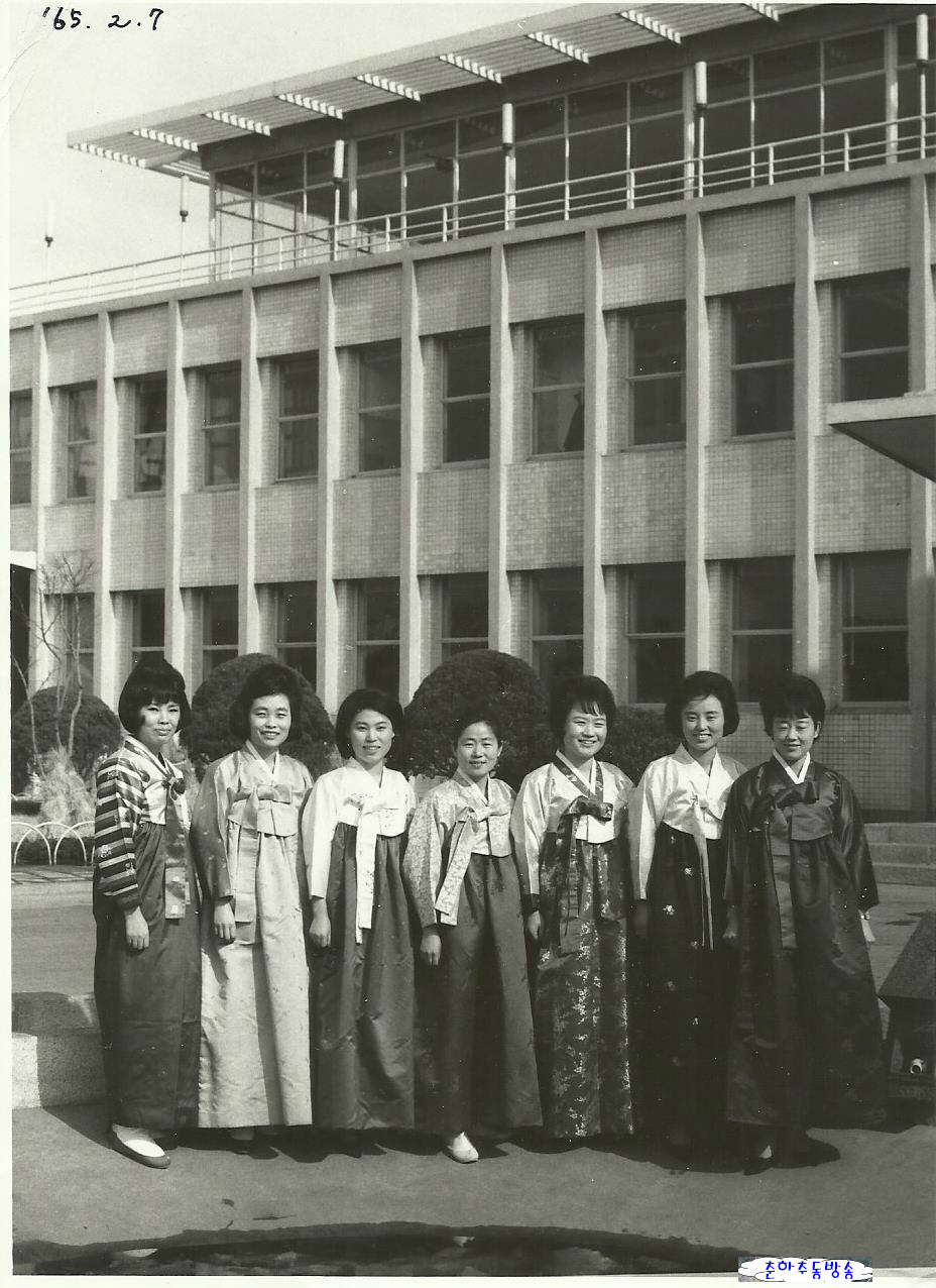 1962년 쯤으로 추정되는KBS중앙방송국 아나운서들이 함께 한 사진으로 앞줄 왼쪽부터 최귀영, 김윤희, 한사람건너 송한규, 김주환 뒷줄 왼쪽부터 이정희, 성선경, 이규영 한사람 건너 임택근, 박종세, 오른쪽에서 두번째 안용민 미국 워싱턴에 사시는 김정자 아나운서가 보내준 사진 두장을 올렸다. 김정자 아나운서는 1961년에 입사 71년까지 재직했다. 위 뒷줄 왼쪽부터 송경원, 임문택, 이규항, 김난숙, 김재영, 심광진, 송한규, 이병열, 이팔웅, 뒤에서 두번째 줄 가운데 김규은. 김정자, 앞에서 두번째 줄 최두헌, 강찬선, 이원춘, 배덕환, 앞줄 김기행, 이계영, 안용민, 아래 65년 2월 7일이라고 쓰여있는 여자아나운서들이다. 왼족부터 김난숙, 김정자, 김규은, 윤미자, 이게영, 조길자, 송영원
