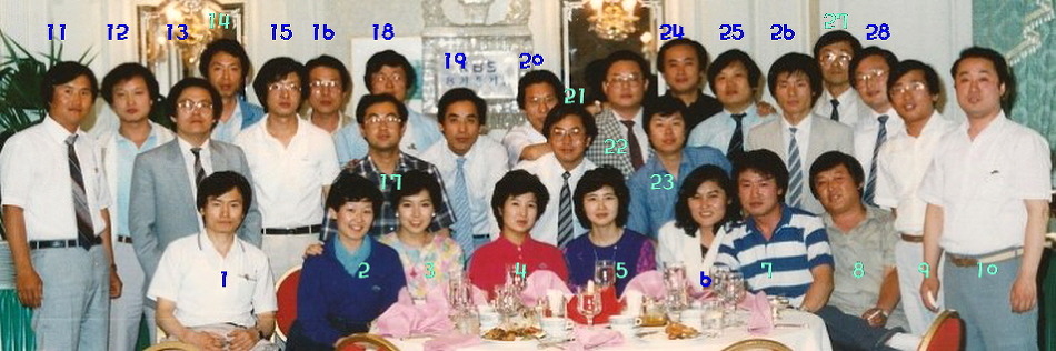 공사 8기 동기생들과 함께 한 사진 번호순으로 1.이상근, 2,김영미, 3.정혜실, 4.유애리, 5.전지영, 6.박일경, 7.김형민, 8. , 9. 황우섭, 10. 최우현, 11.김성수, 12.조봉훈, 13.정구성, 14.최기홍, 15.송희일, 16.남기석, 17.윤용훈, 18.김철수, 19.정성진, 20.정길남, 21.황봉익, 22.장병천, 23.길환영, 24.안상륜, 25.이병렬, 26. 이학정, 27. , 28. 김대휘님. 아나운서 글 더 보기 영문자 클릭->