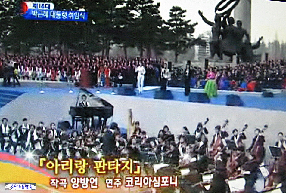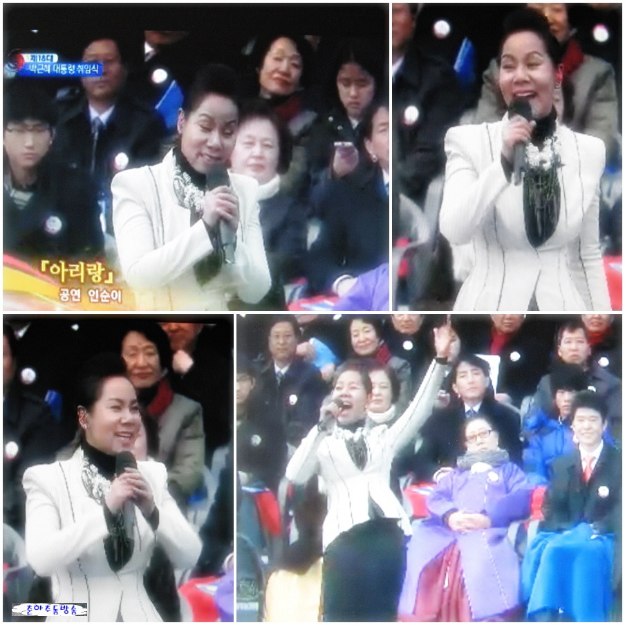 제18대 대통령 취임식 경축연에서 민족의 노래, 세계인의 노래 아리랑이 울려 퍼져 깊은 감동을 주기에 충분했다. 어느 누가 특별히 작곡한 것도 아니고 작사한 것도 아니지만 한민족이 있는 곳이면 어디서든지 어느 때든지 그 노래를 부르며 즐긴다. 그 아리랑이 세계유산으로 채택된 후 세계인이 지켜본 가운데 첫 번째 맞이하는 대통령 취임식 경축연에서 그 노래를 대표곡으로 채택한 것은 특별한 의미가 있었고 훌륭한 경축공연이었다.