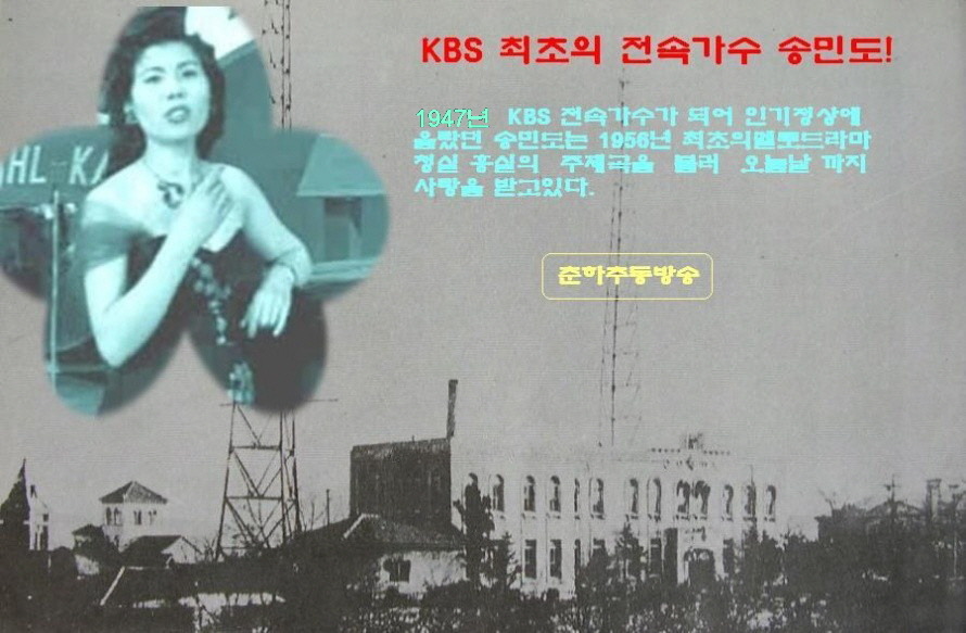 송민도가 방송국 최초의 전속가수로 활동한것은 1947년의 일이다. 해방되고 마땅한 대중가요 가수가 적었던 시절에 KBS는 방송국에서 봉급을 주는 최초의 전속가수를 모집했고 이때 선발된 사람이 송민도를 비롯해서 뒷날 크게 이름을 날린 원방현, 김백희등이다.