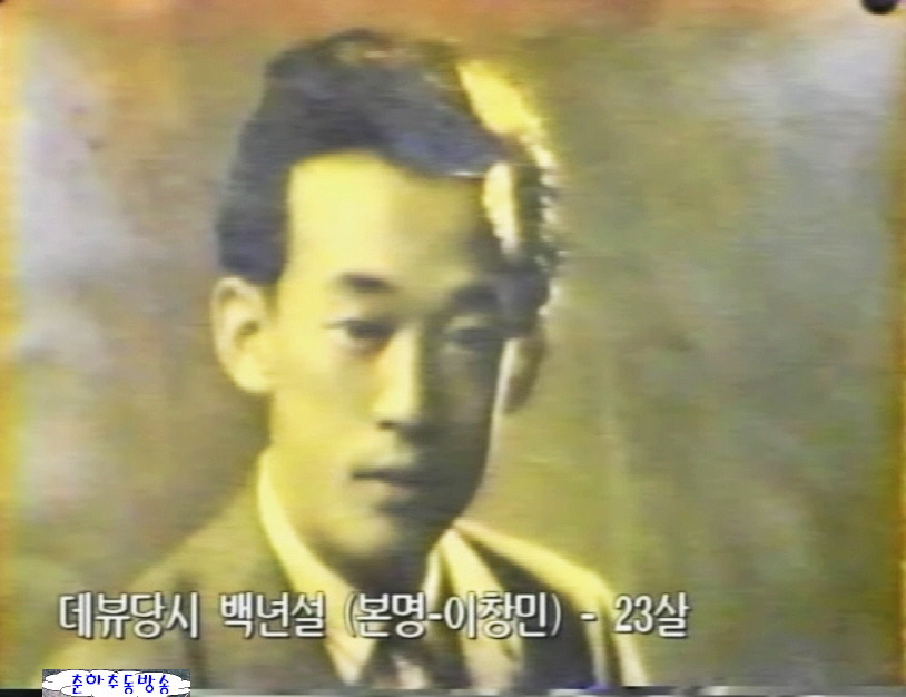 1914년 경상북도 성주에서 출생한 백년설의 원래 이름은 이창민이다. 1936년 노래를 부르면서 백년설이라는 이름이 널리 알려져 그와 비슷한 시기에 가수로 데뷔한 남인수와 쌍벽을 이루며 수많은 히트곡을 냈다. 「나그네설움」「번지없는 주막」을 비롯 「대지의 항구」,「고향소식」,「일자일루(一字一淚)」,「두견화사랑」, 「어머님사랑」, 「복지만리」 「유랑극단」,「두견화 사랑」등이다. 6.25젼쟁이 끝나고 「한강」 등을 불러 히트한 심연옥과 결혼해서 부부가수로 활동했다. 1977년 9월 미국으로 가 1980년 세상을 떴다.