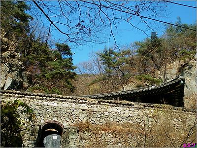 일주문 옆에서