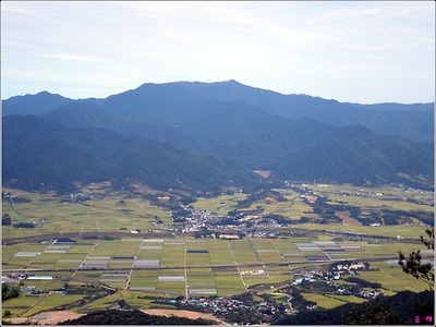 남원시 전경 호남정맥 팔공산에서 분지하는 계동지맥의 꼬리부분인 고리봉과 문덕봉. 요천과 섬진강이 합류하는 지점이다.