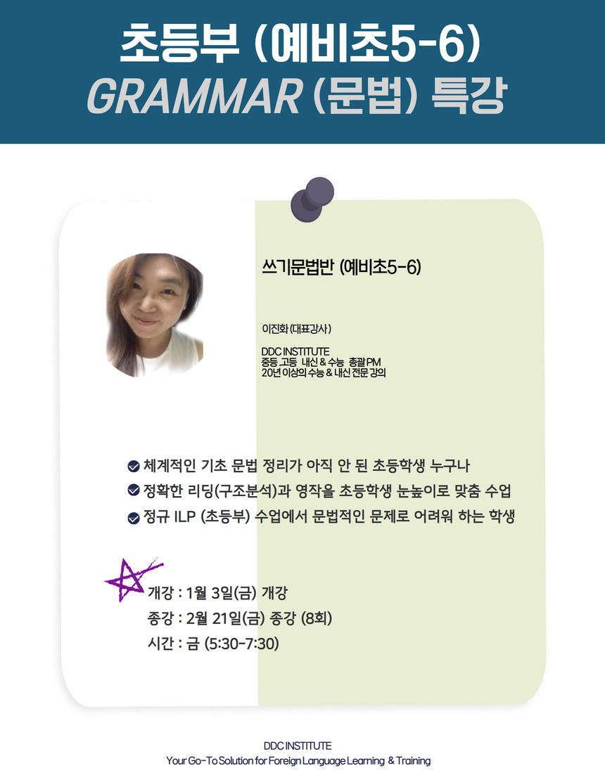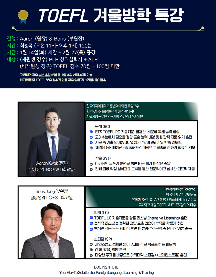 [2025 겨울방학 특강]DDC INSTITUTE 특강 안내 작성자DDC INSTITUTE|작성시간24.12.16|조회수295 목록 댓글 0 글자크기 작게가 글자크기 크게가 다음검색 현재 게시글 추가 기능 열기 북마크 공유하기 신고 센터로 신고 댓글 댓글 0 댓글쓰기 답글쓰기 댓글 리스트