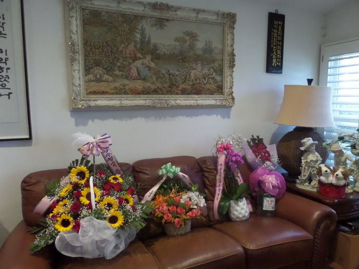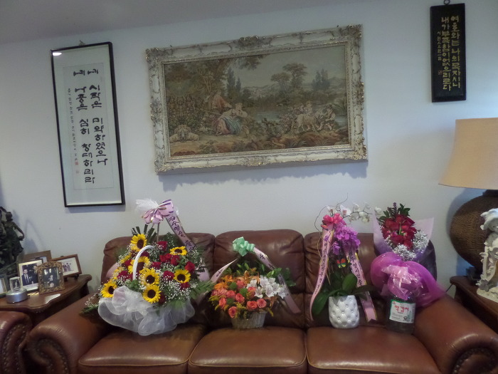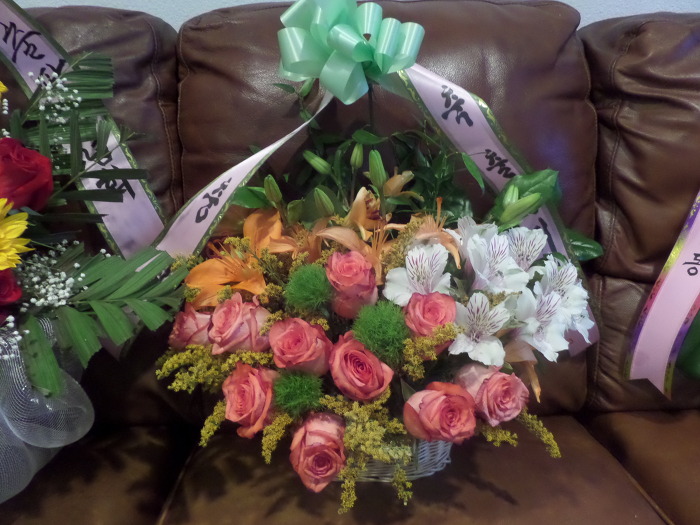 꽃 바구니를 갖고 오셨는지 감격이었습니다. 얼마나 예쁜지 아직도 싱싱하게 살아 있어 아침 저녁으로 쳐다보며 그