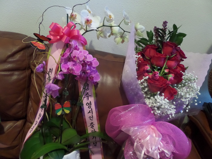 성민희 회장님과 유니스 박 이사장님은 어찌 제가 해바라기를 좋아 하는지 아시고 노란 해바리기와 빨간 장미 꽃의