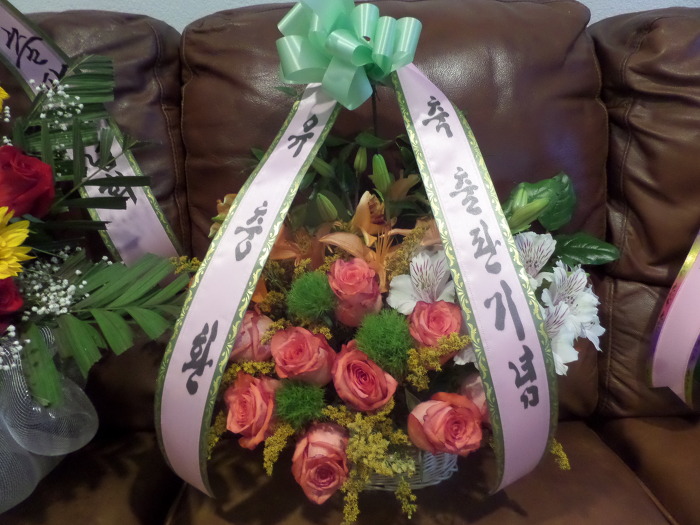 화환은 너무 커서 갖고 올 수 없어 고객들이 다 뽑아 가도록 했습니다. plant는 교회 성전에 갖다 놓았습니다.