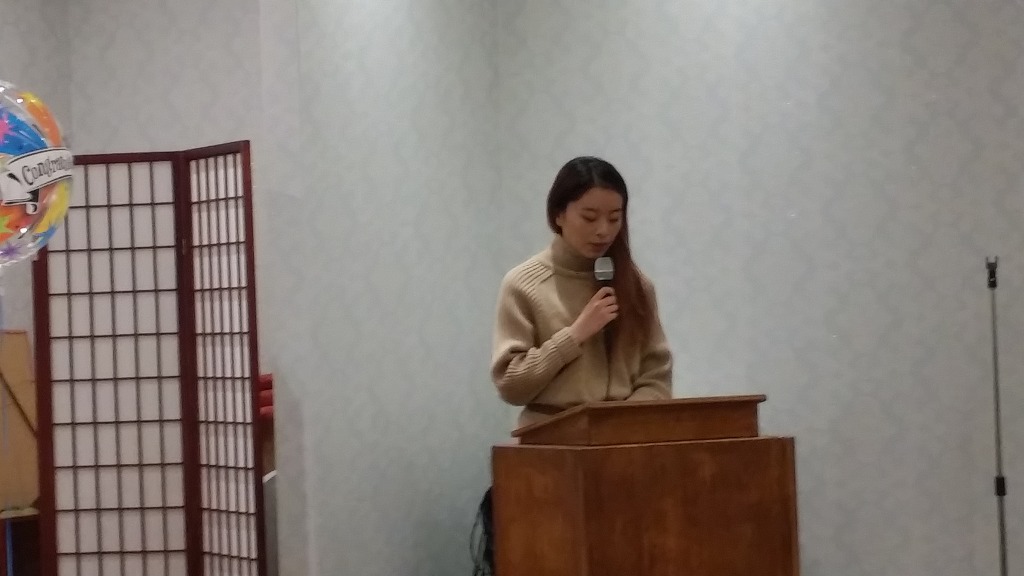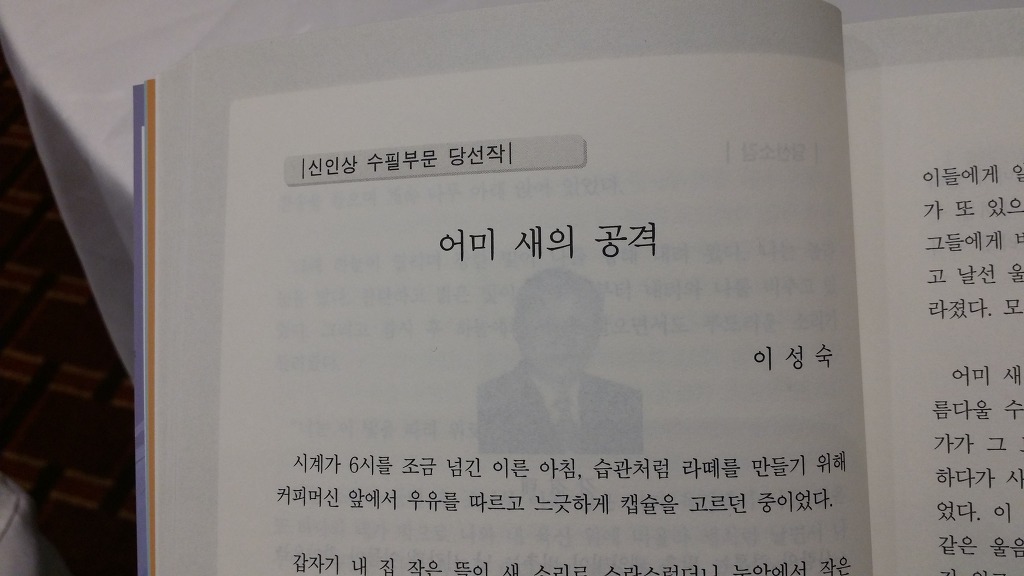 위의 사진은 이성숙 선생님의 따님이신데, 어머니의 수상작 일부를 낭독하는 모습입니다. 낭독 후에 따님은 "어린 새끼 새를 지키려는 어미 새의 얘기를 쓴 엄마의 글이 무척 깊이 마음에 다가왔어요. 엄마, 화이팅!" 이라고 큰 소리로 외쳤는데, 무척이나 인상적이었습니다.