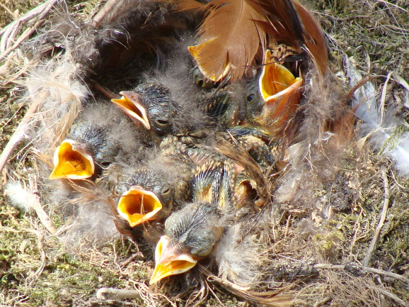 일제히 일어나 주둥이를 벌려 먹이를 기다리고 있다.