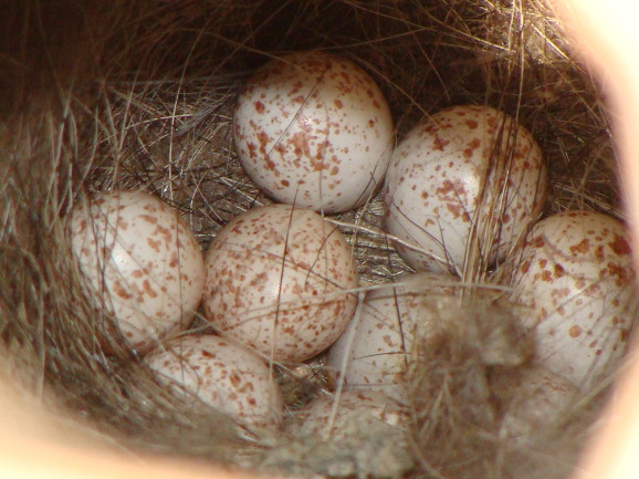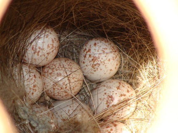 박새가 둥지를 틀고 알을 낳았다.