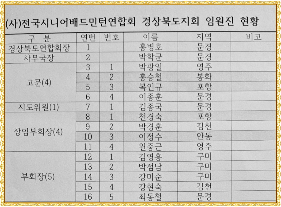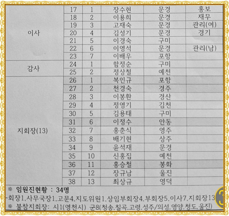 부회장.시군회장,이사,)임원진을 구성하여서 열성적으로노력하여 문경시청에서