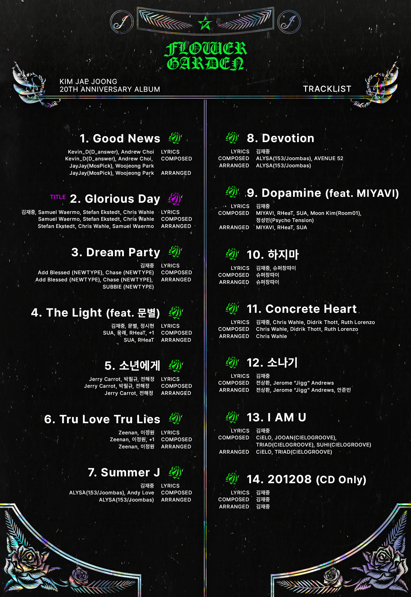 [[공지]]20th anniversary album 'FLOWER GARDEN' TRACK LIST 작성자iNKODE엔터테인먼트|작성시간24.06.20|조회수650 목록 댓글 0 글자크기 작게가 글자크기 크게가 #플라워가든 #FLOWER_GARDEN 다음검색 현재 게시글 추가 기능 열기 북마크 공유하기 신고 센터로 신고 댓글 댓글 0 댓글쓰기 답글쓰기 댓글 리스트