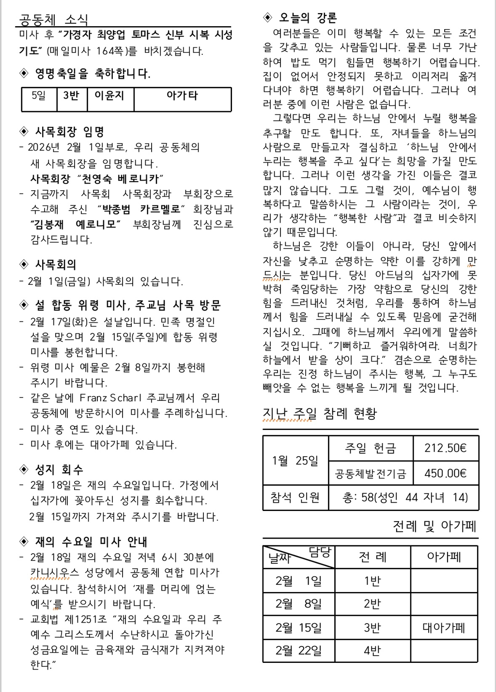 연중 제 4 주일(2월 1일) 작성자2UJB|작성시간26.02.01|조회수40 목록 댓글 0 글자크기 작게가 글자크기 크게가 다음검색 현재 게시글 추가 기능 열기 북마크 신고 센터로 신고 댓글 댓글 0 댓글쓰기 답글쓰기 댓글 리스트