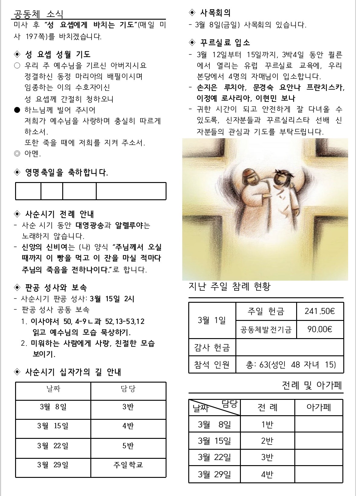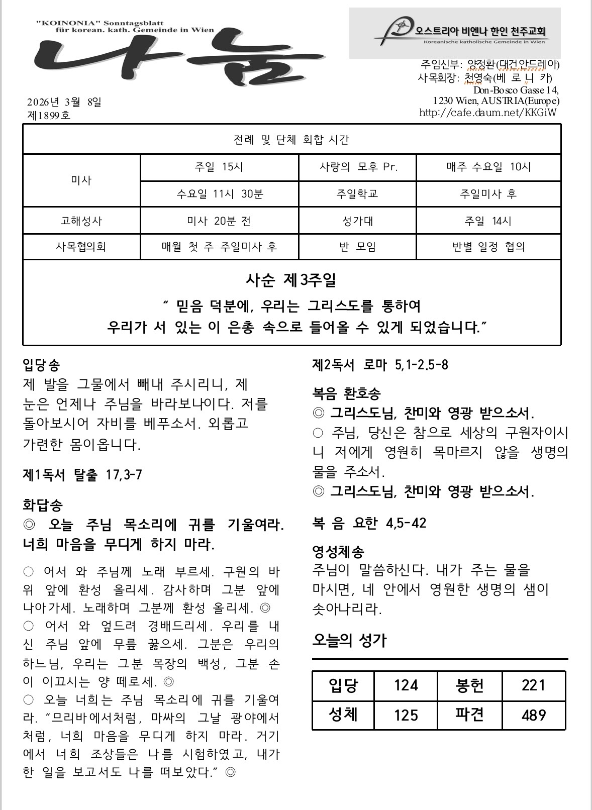 사순 제 3주일 (3월 8일) 작성자2UJB|작성시간26.03.07|조회수33 목록 댓글 0 글자크기 작게가 글자크기 크게가 다음검색 현재 게시글 추가 기능 열기 북마크 신고 센터로 신고 댓글 댓글 0 댓글쓰기 답글쓰기 댓글 리스트