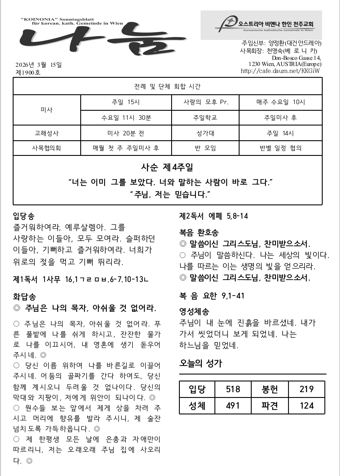 사순 제4주일 (3월 15일) 작성자2UJB|작성시간26.03.14|조회수39 목록 댓글 0 글자크기 작게가 글자크기 크게가 다음검색 현재 게시글 추가 기능 열기 북마크 신고 센터로 신고 댓글 댓글 0 댓글쓰기 답글쓰기 댓글 리스트
