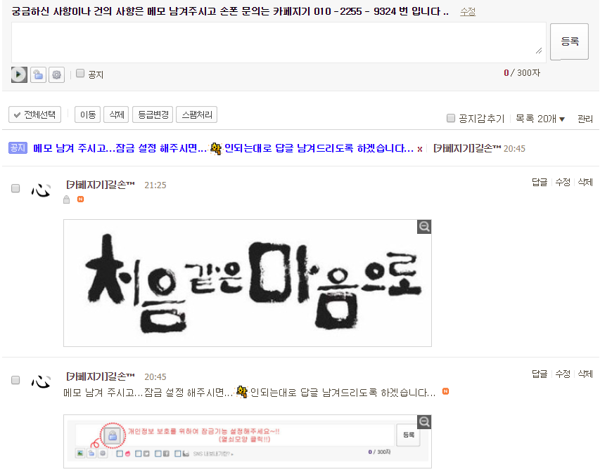 등업관리& 스팸글 삭제 업무를 분담하시기로 하셨습니다.....
