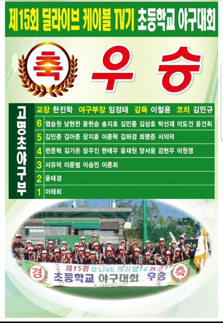 2018년 제15회 딜라이브 케이블TV기 초등학교 야구대회에서 우승을 하였습니다!!!