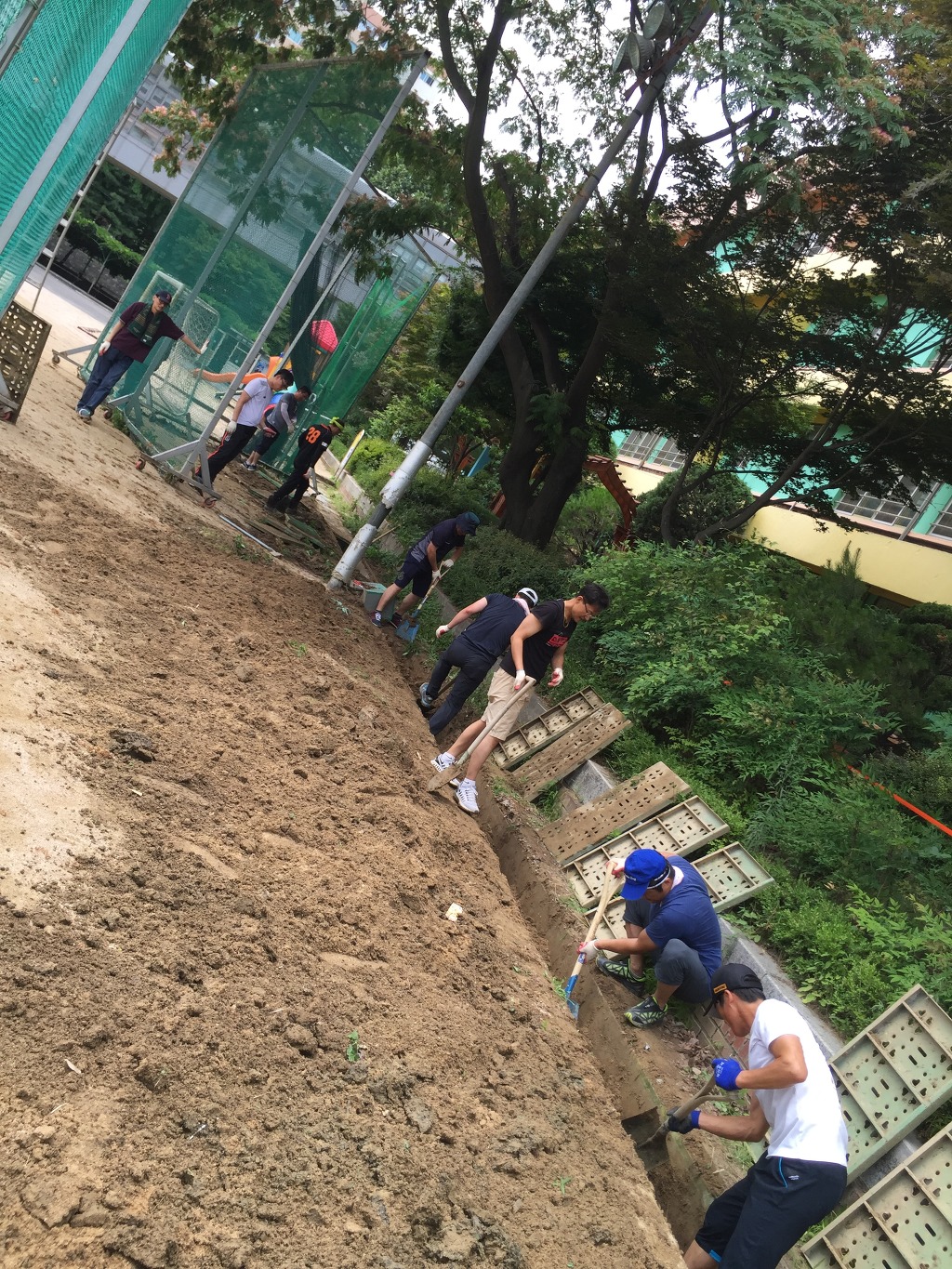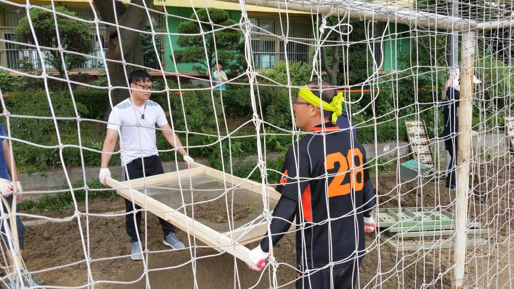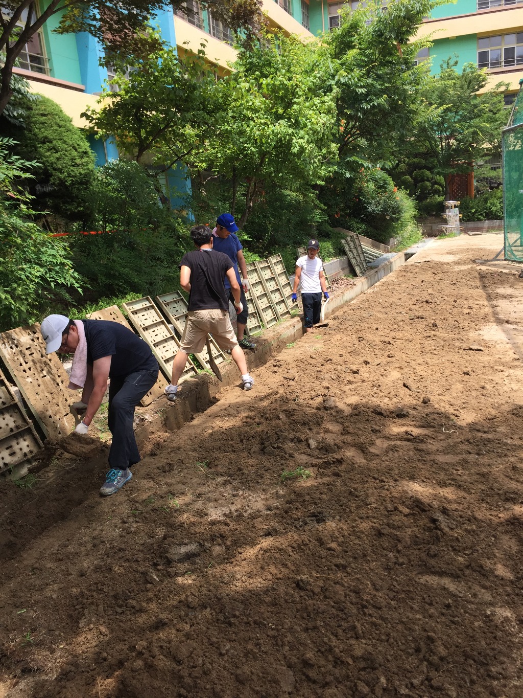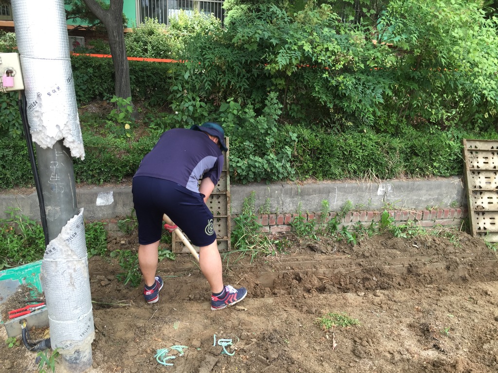 그 흙들을 파다가 강당쪽 모자란 곳을 돋우었습니다.