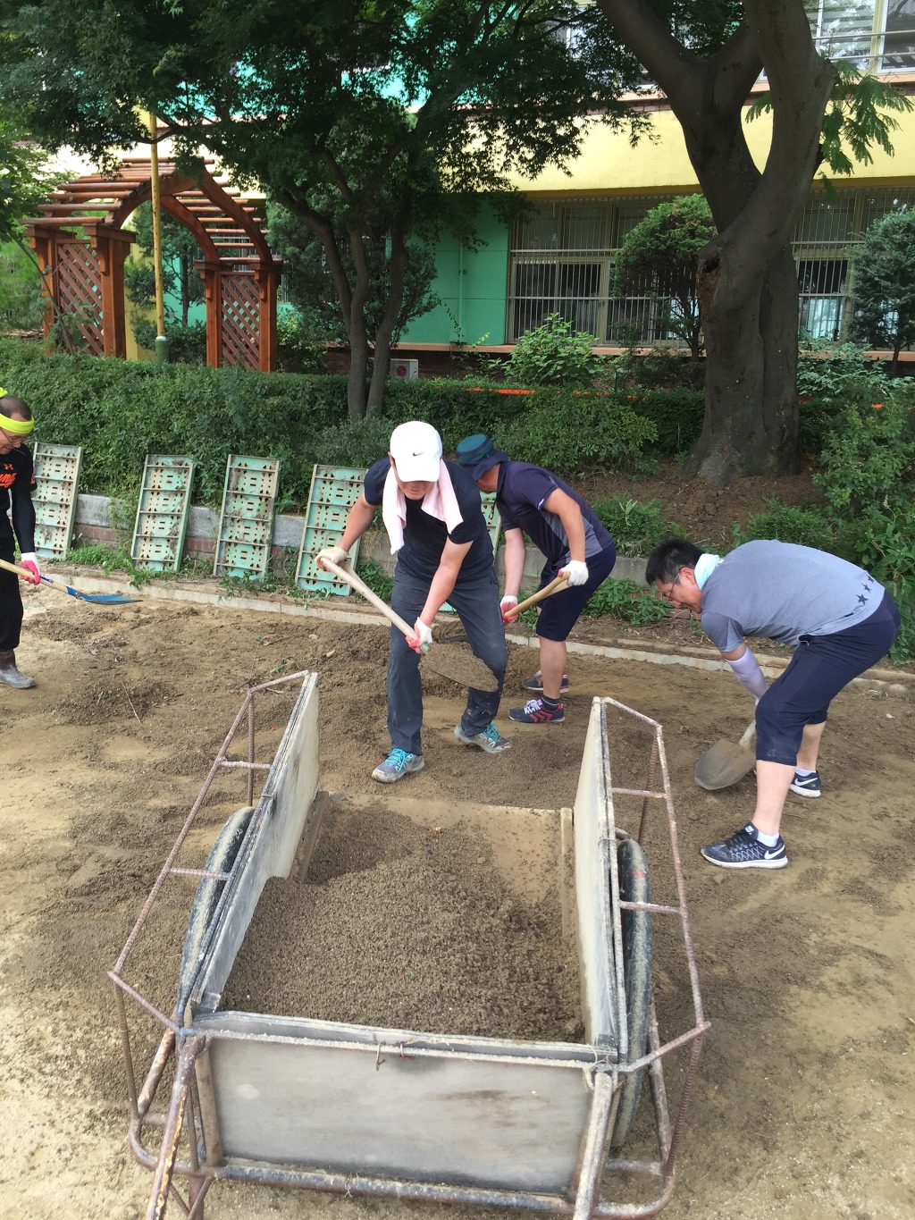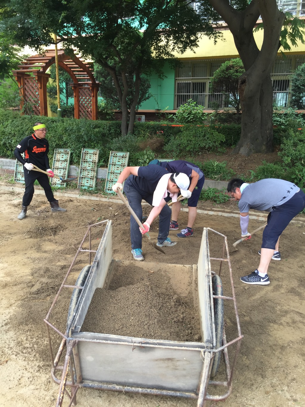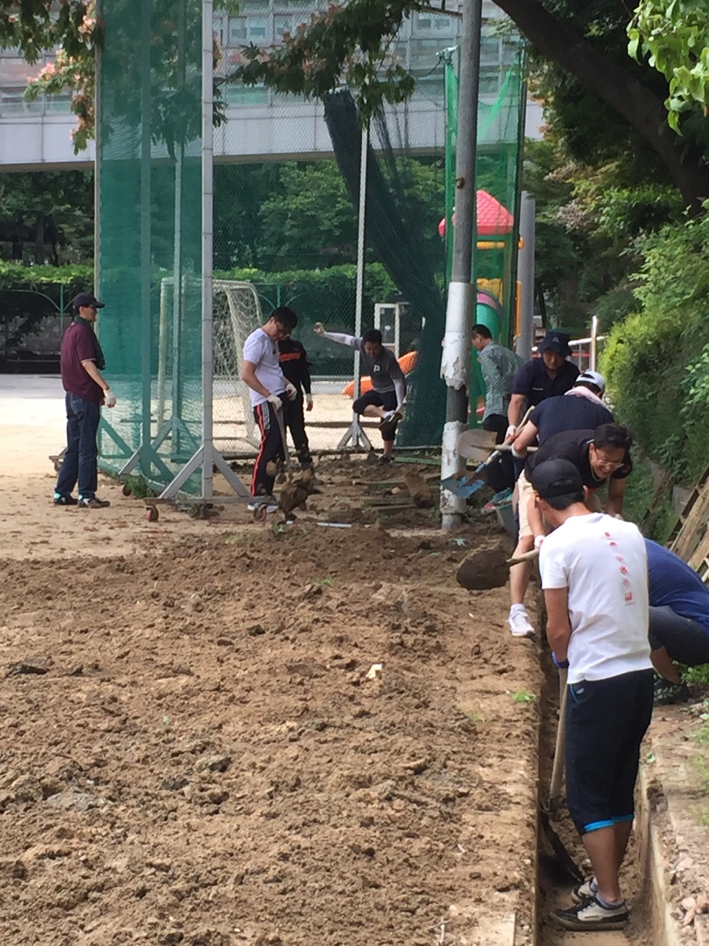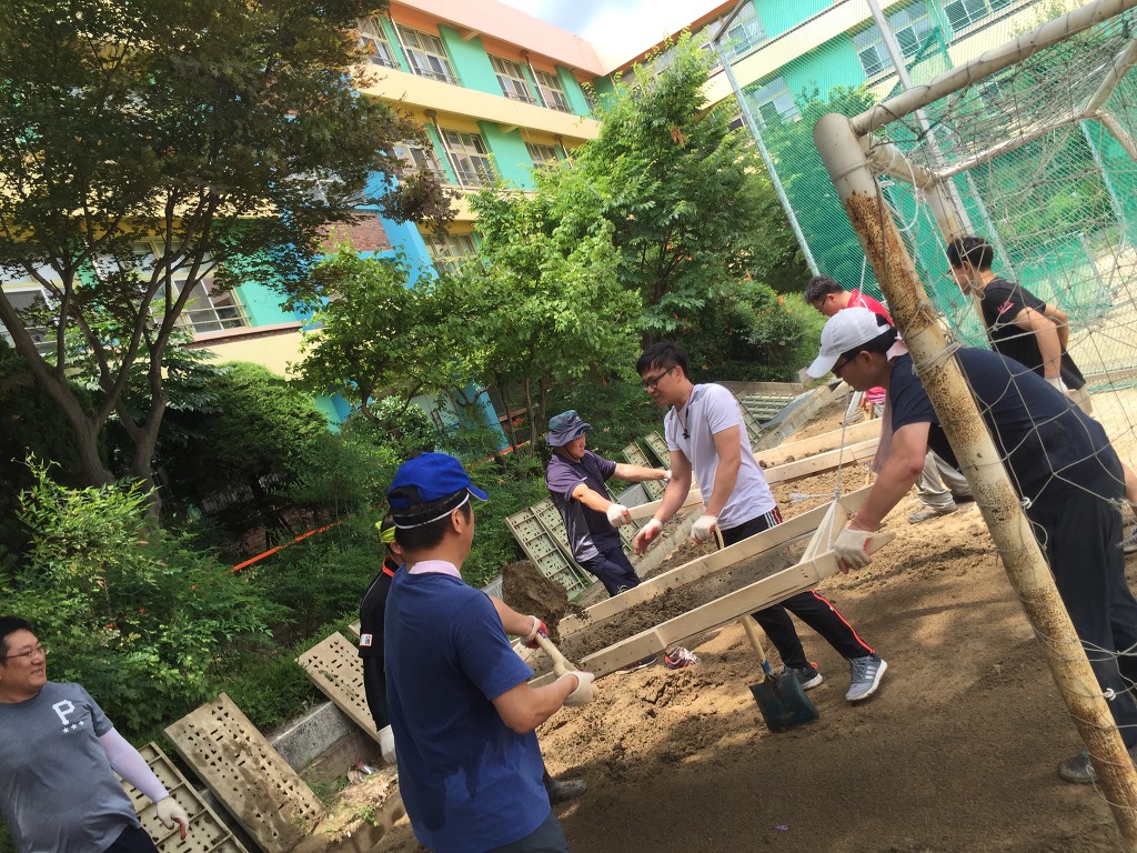 그 흙들을 파다가 강당쪽 모자란 곳을 돋우었습니다.
