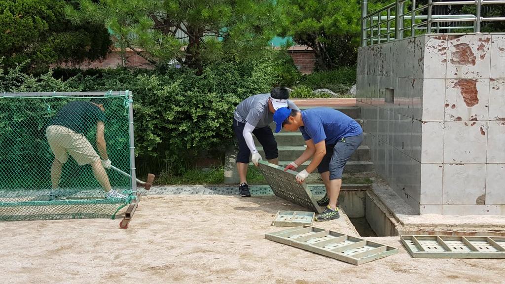 외야쪽 배수로 뚜껑을 열어보니 흙이 한가득....그쪽은 하지 못했었나봐요.
