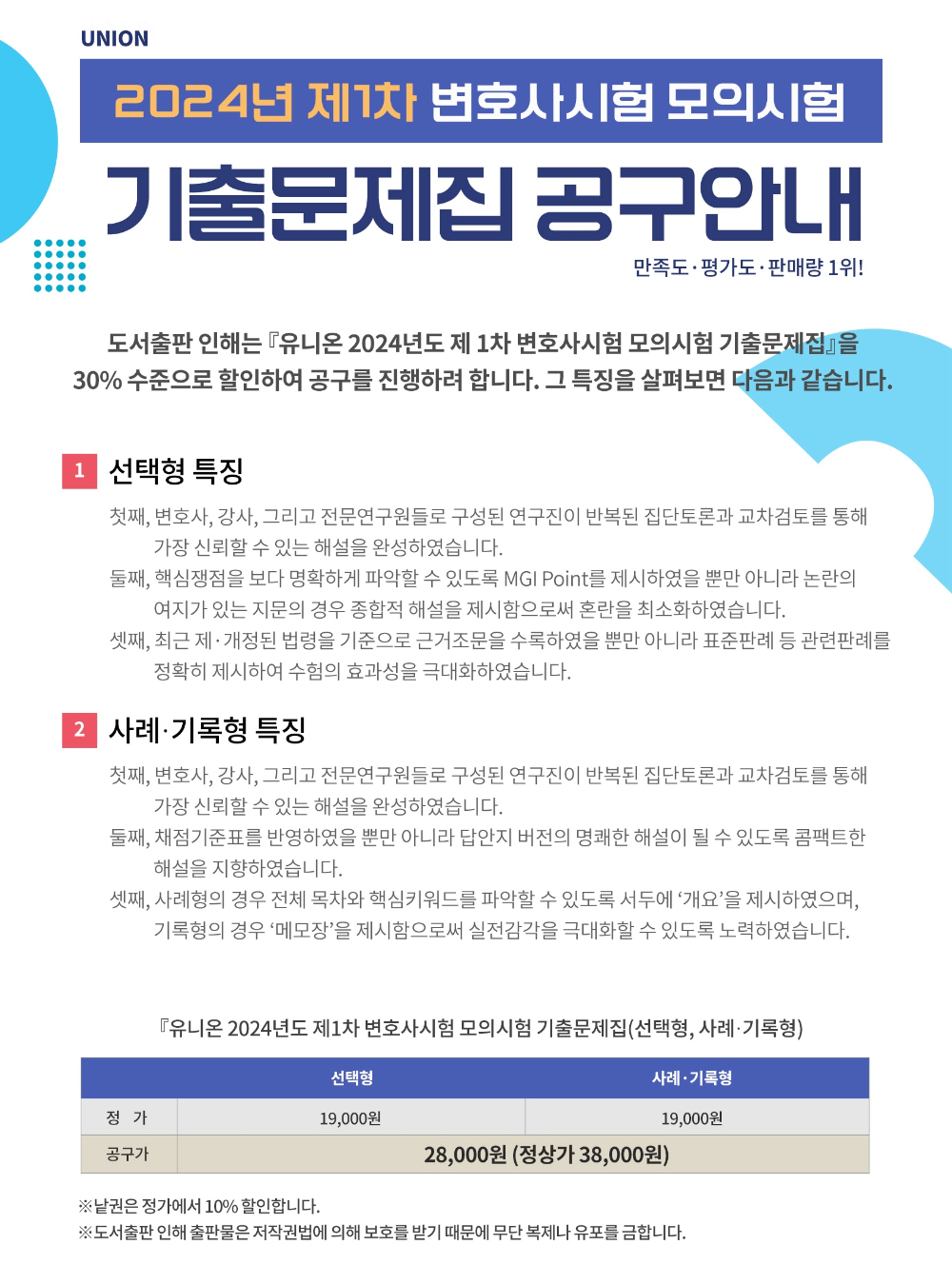 1. 공동구매 대상: 유니온 2024년도 제 1차 변호사시험 모의시험 기출문제집