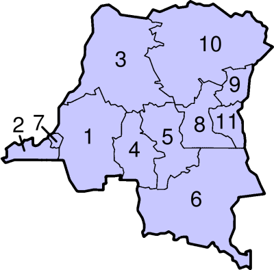 콩고 민주 공화국의 행정구역은 2009년 부터 10개의 주(province)와 1개의 시(ville)로 구성되었다.