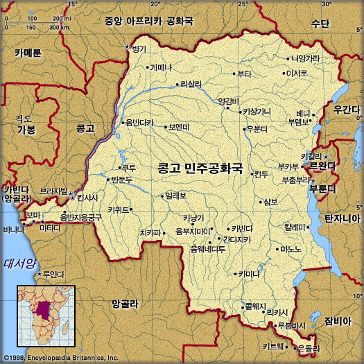 콩고강은 길이 6,400㎞의 세계적으로 큰 강으로 수력발전 잠재력이 큰 지대(세계 총 잠재력의 1/8, 아프리카의 1/2)로써 유역면적(3,457,000㎢)은 아마존강에 이어 세계 2위이다. 동쪽으로 부룬디, 탄자니아와 국경을 이루는 탕가니카 호수는 세계적 규모의 큰 호수로써 면적은 32,900㎢, 깊이는1,400m이다.
