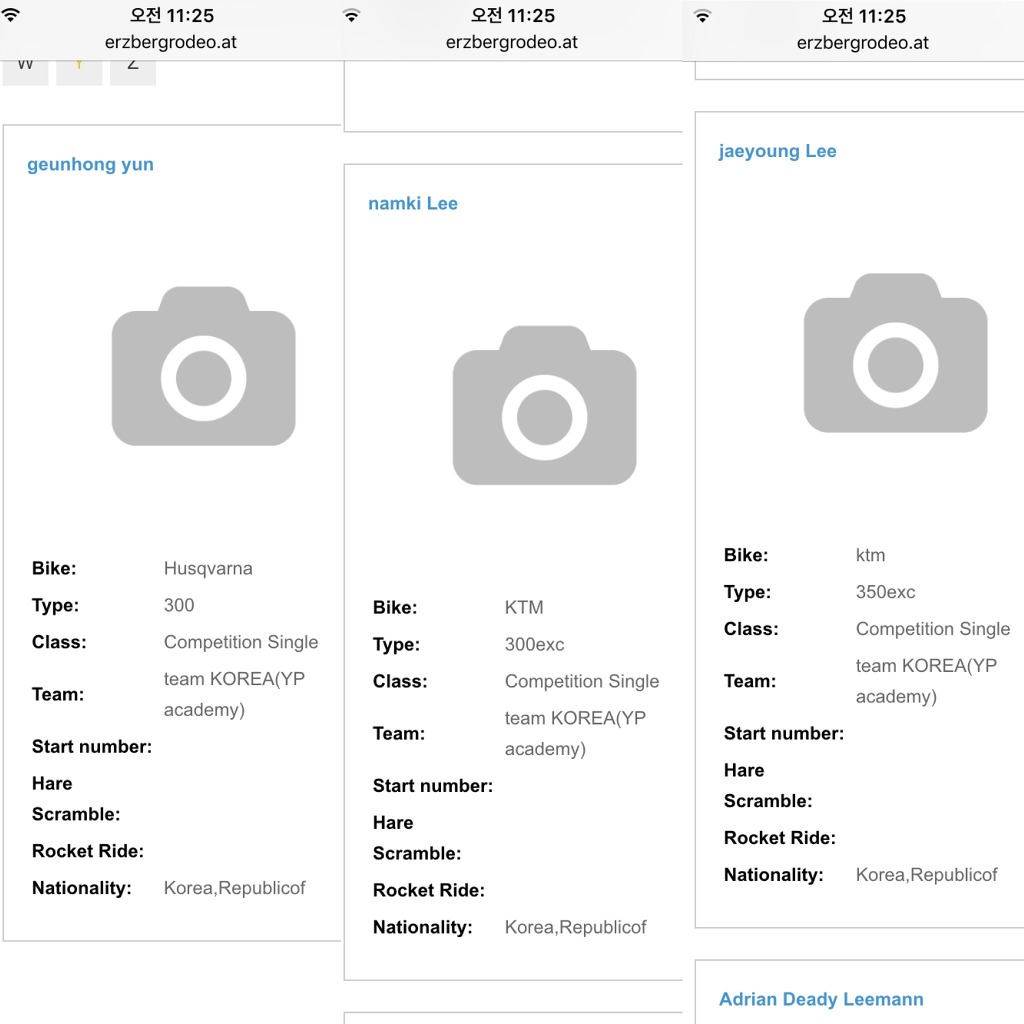 오스트리아 에르츠버그로데오에 3명의 선수 가 등록 하였습니다