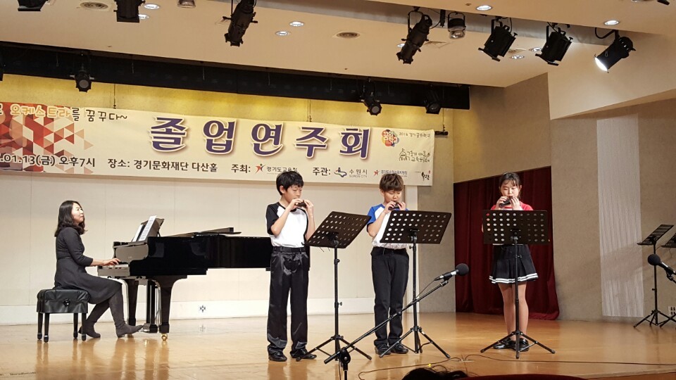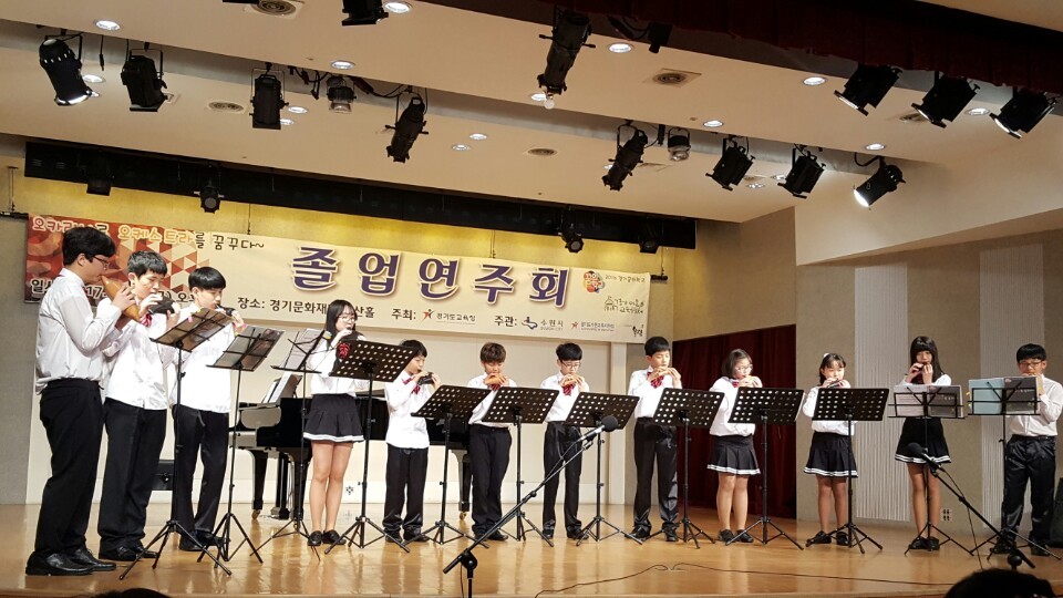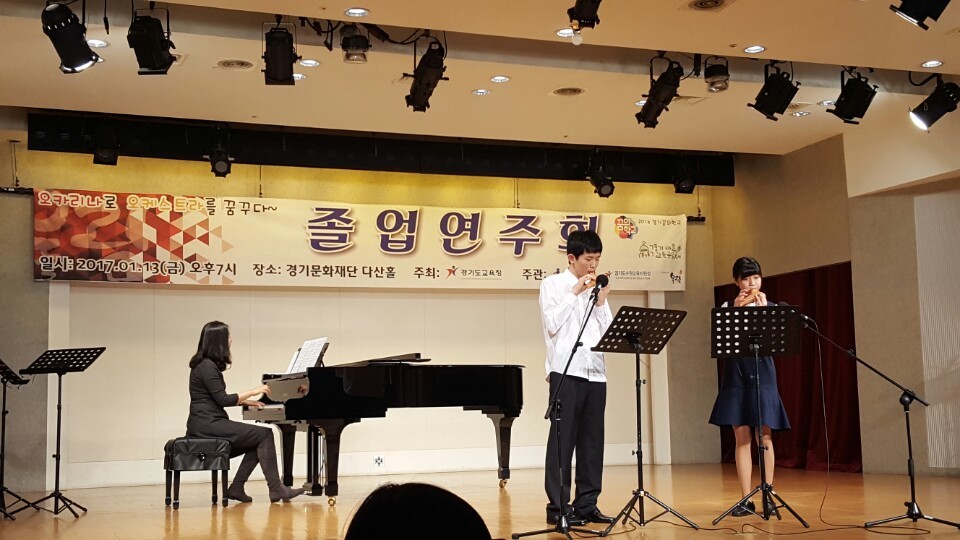 경기 꿈의 학교 졸업 연주회 작성자최석경|작성시간17.01.15|조회수45 목록 댓글 1 글자크기 작게가 글자크기 크게가 다음검색 현재 게시글 추가 기능 열기 북마크 공유하기 신고 센터로 신고 댓글 댓글 1 댓글쓰기 댓글 리스트 작성자최석경 작성자 본인 여부 작성자 | 작성시간 17.01.15 2017년 1월 13일 금요일 오후 7시에 경기문화재단 다산홀에서 경기 마을교육공동체 꿈의 학교(경기도 교육청 지원) 졸업 연주회가 있었습니다.약 5개월 동안 배우고 익힌 오카리나 연주를 학생들이 훌륭히 보여 주어서 선생님들과 울림 회원들, 학부님들로 부터 많은 박수를 받았슨니다. 댓글 전체보기