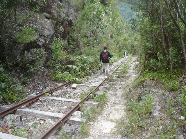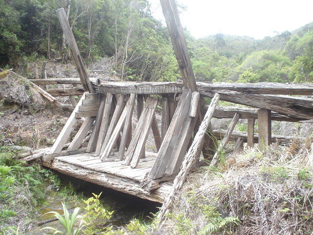 있었던 것이다. 늦게 올라온 일행과는 산장에서 만나기로 하고 우리는 피너클 피크 약간 아래쪽에 있는 무지 오래된 카우리 나무 수송을 위해 계곡을 막았던 나무 댐을 구경했다.