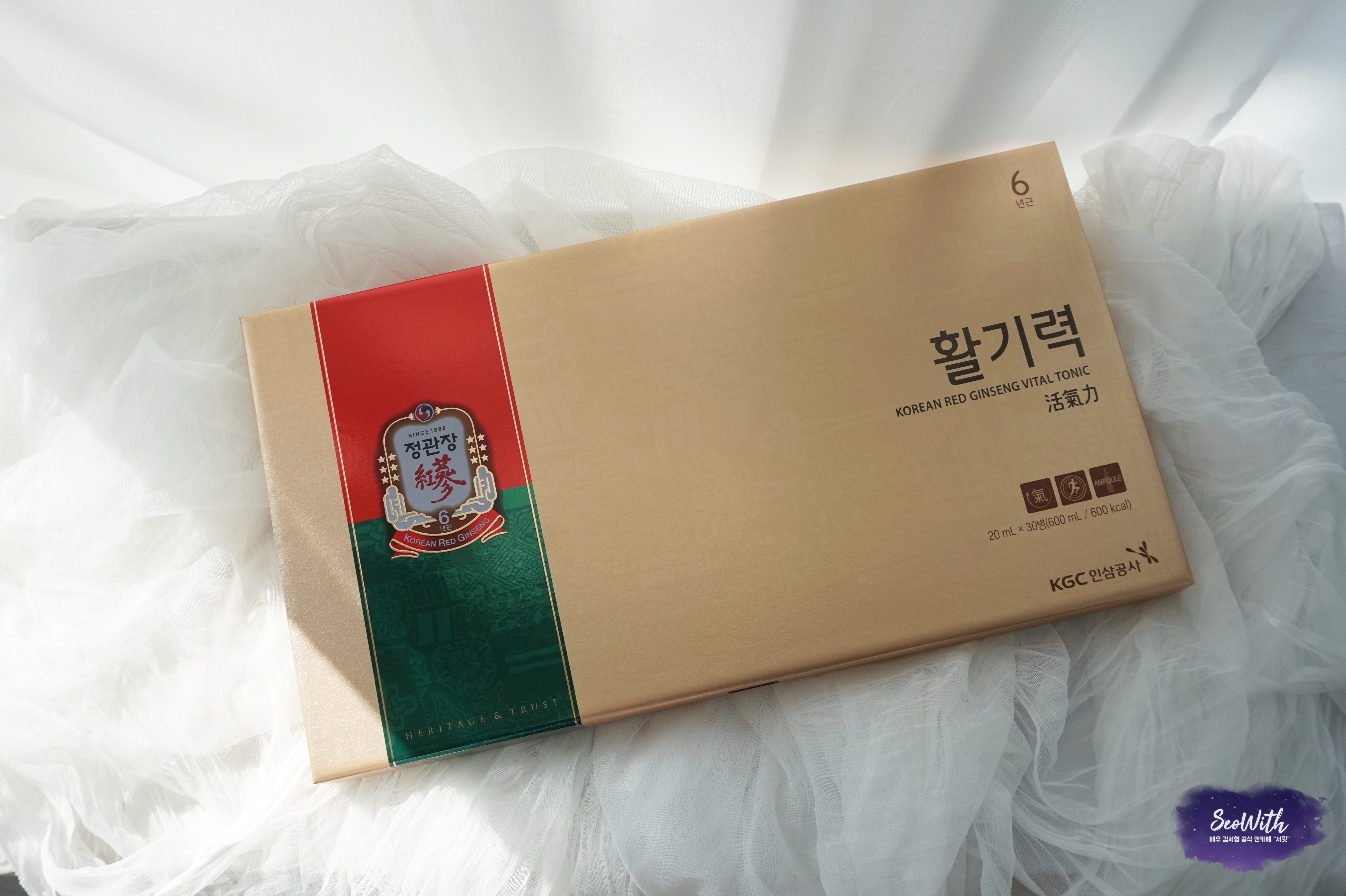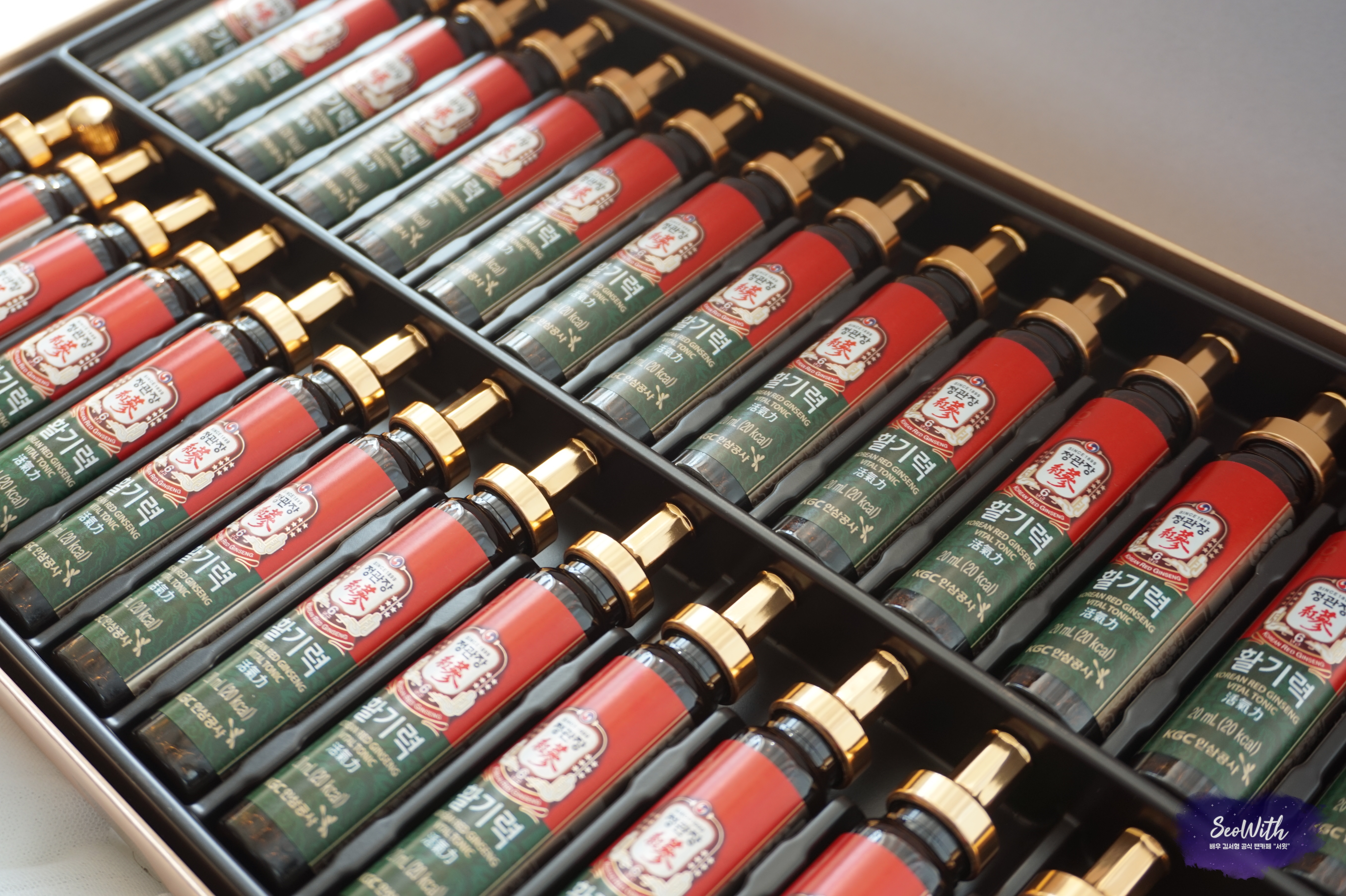 6년근 홍삼과 생강, 대추, 구기자, 오미자, 황기 등이 들어간 앰플 스타일의 홍삼 진액으로