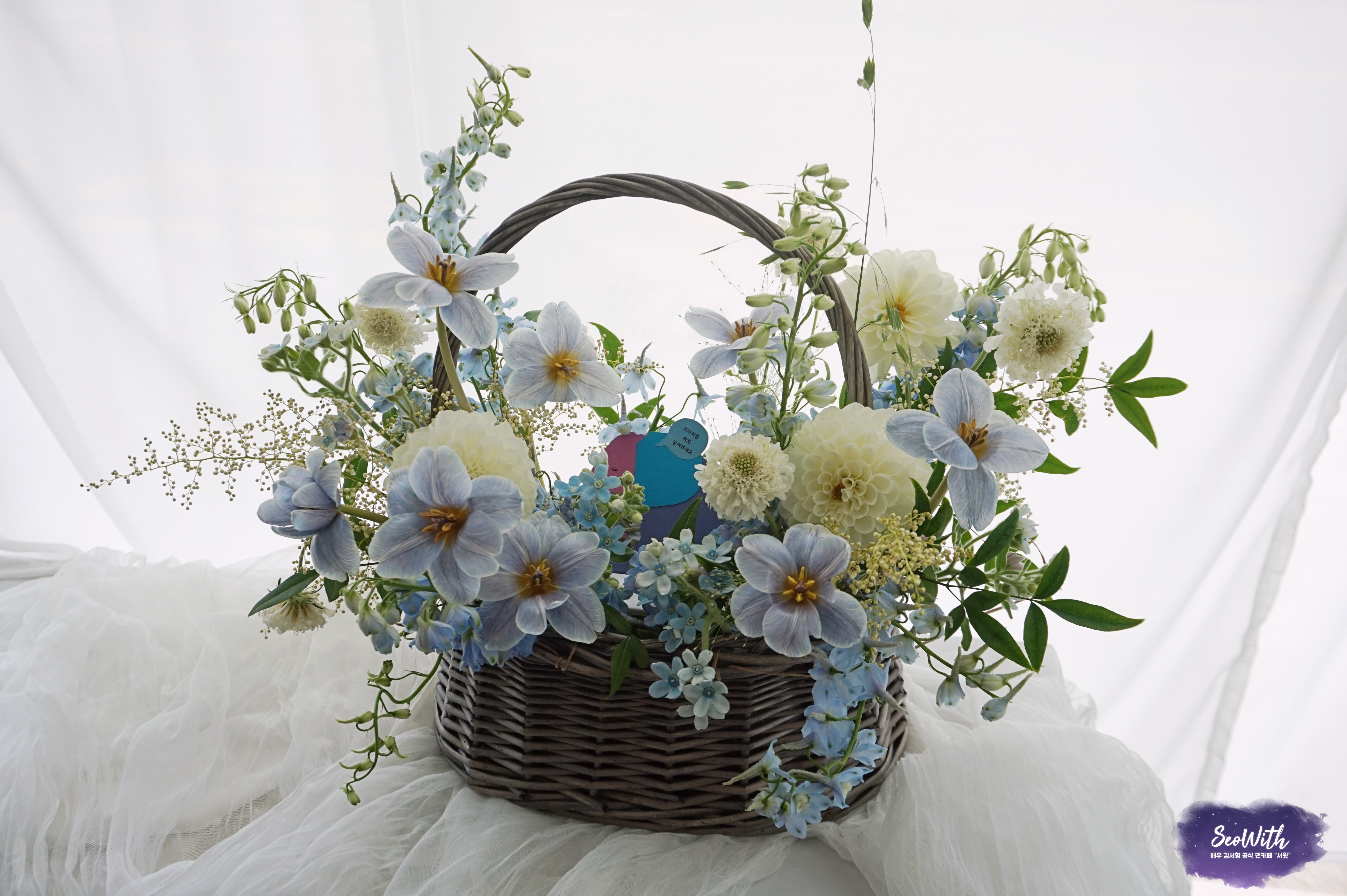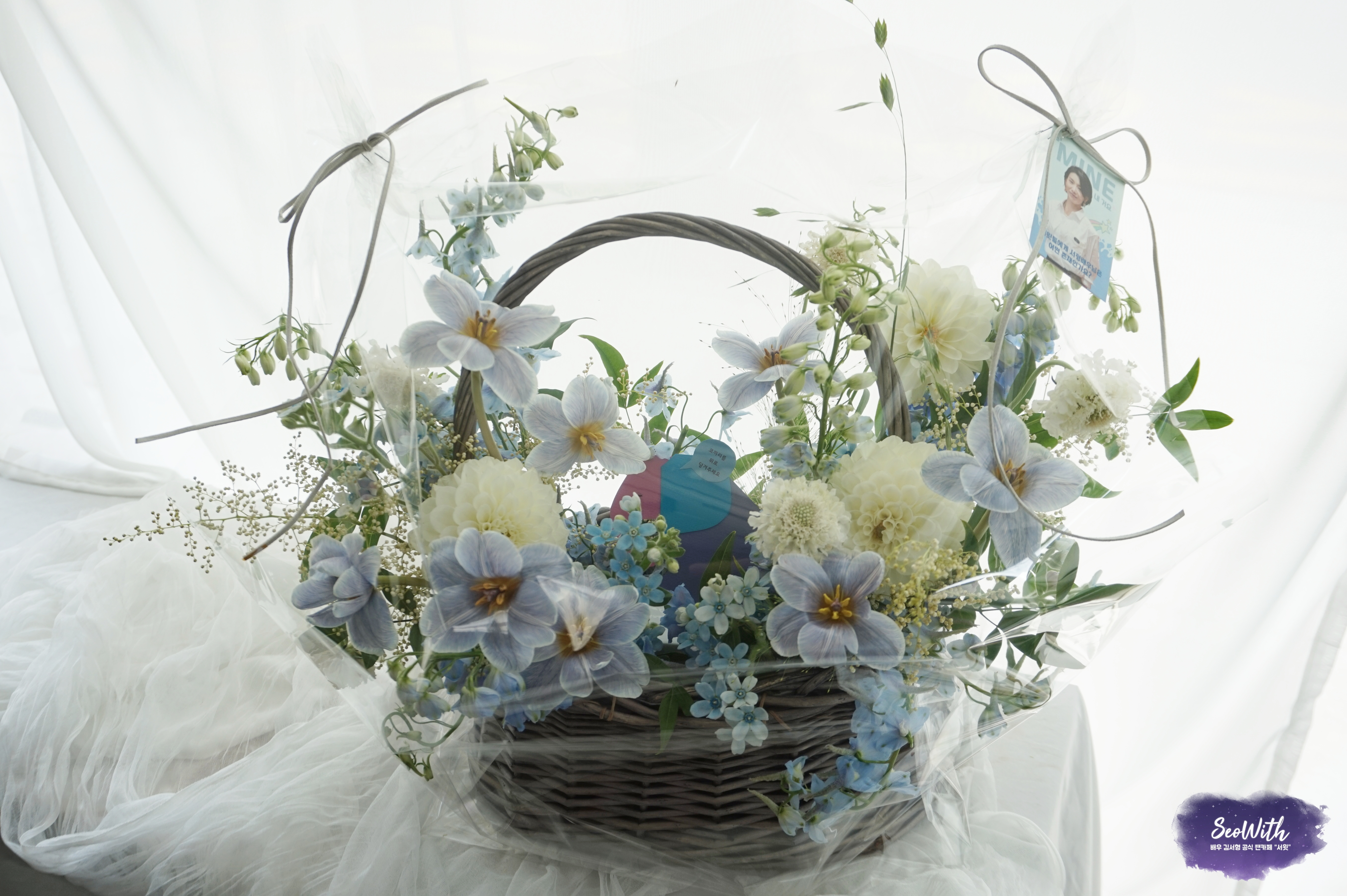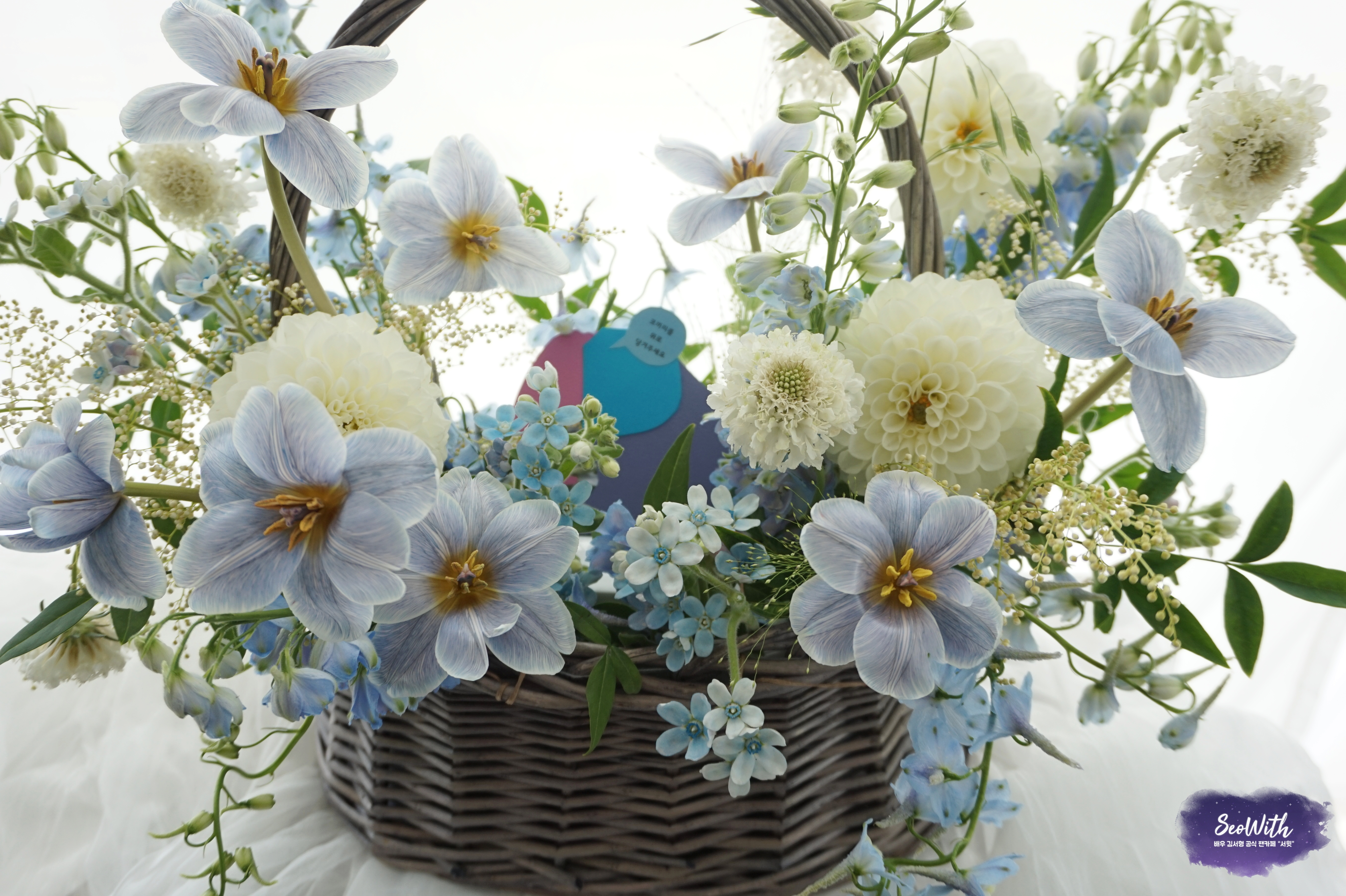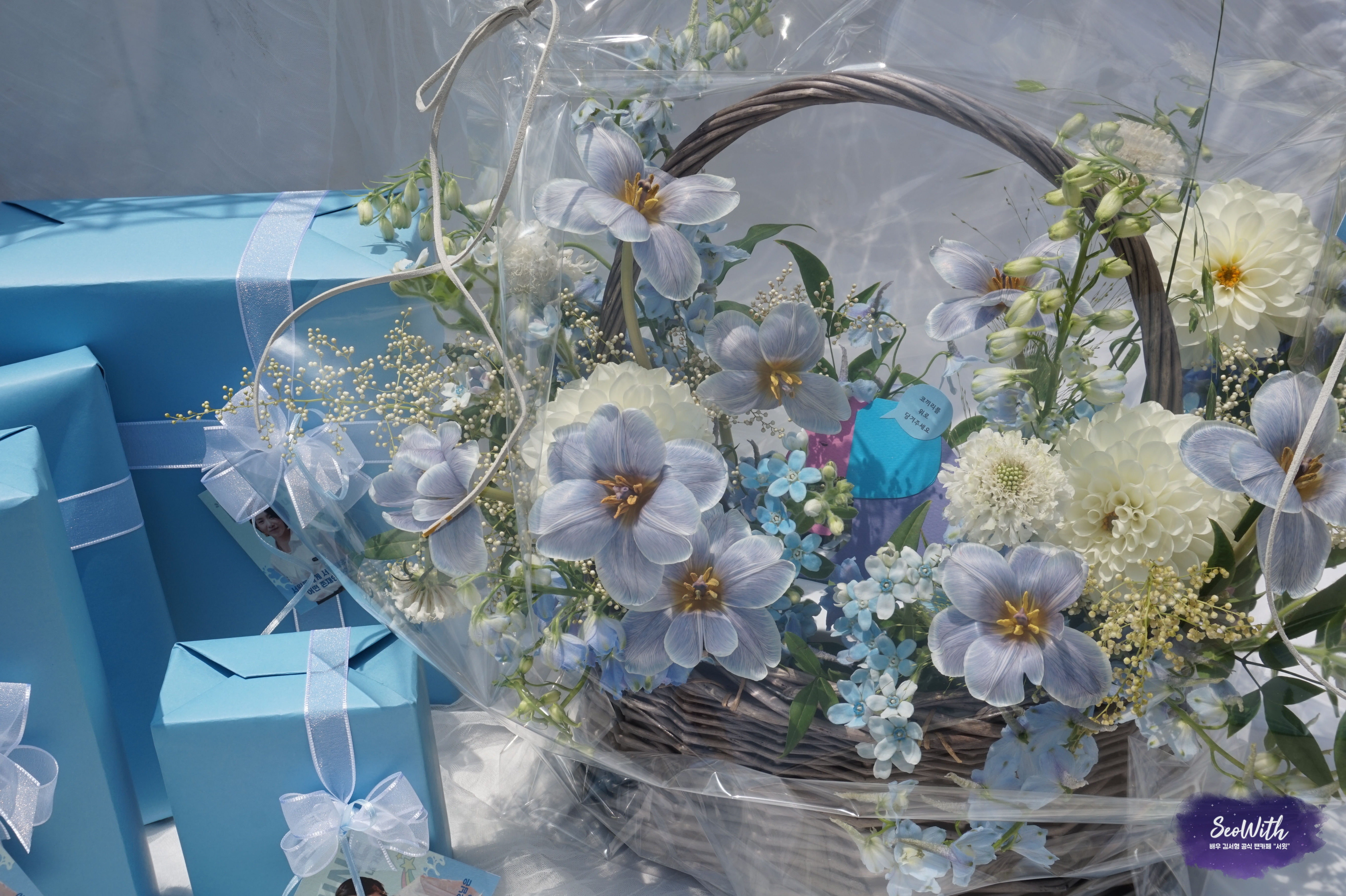 블루다이아몬드 컨셉 컬러로 제작된 꽃바구니에 맞춰