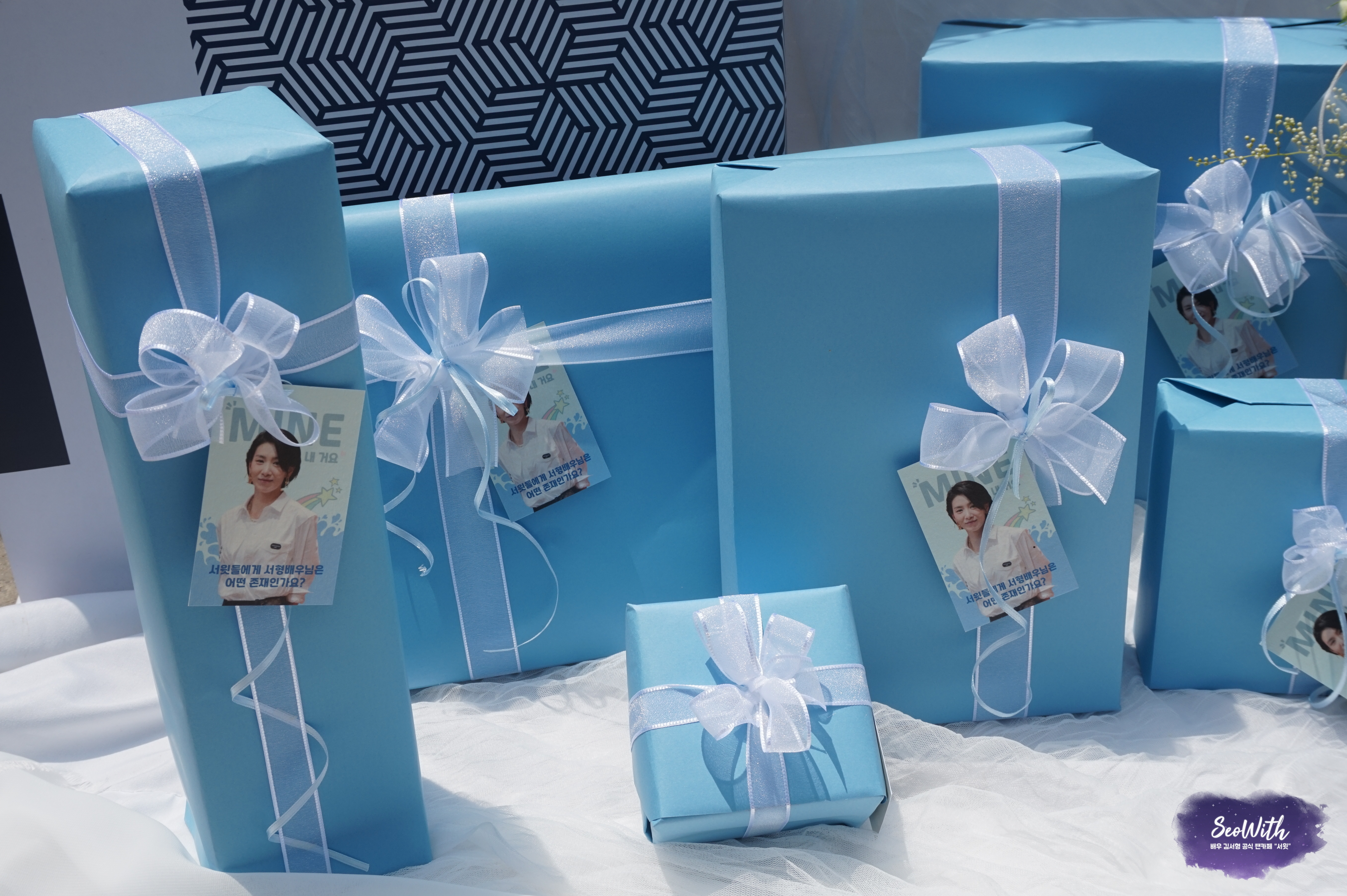 전체적인 서포트 선물 포장컬러도 밝은 블루톤으로 통일하였습니다.
