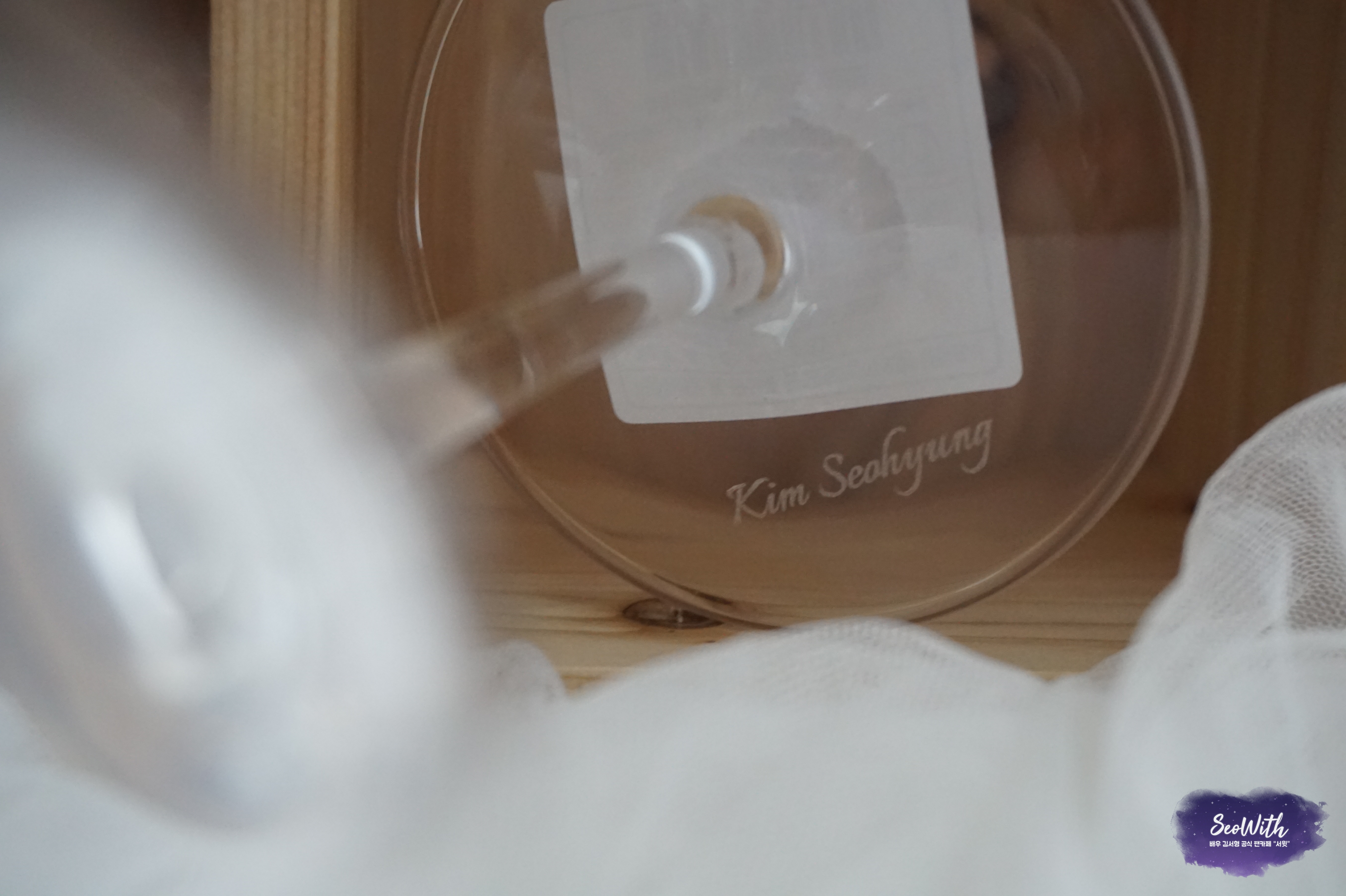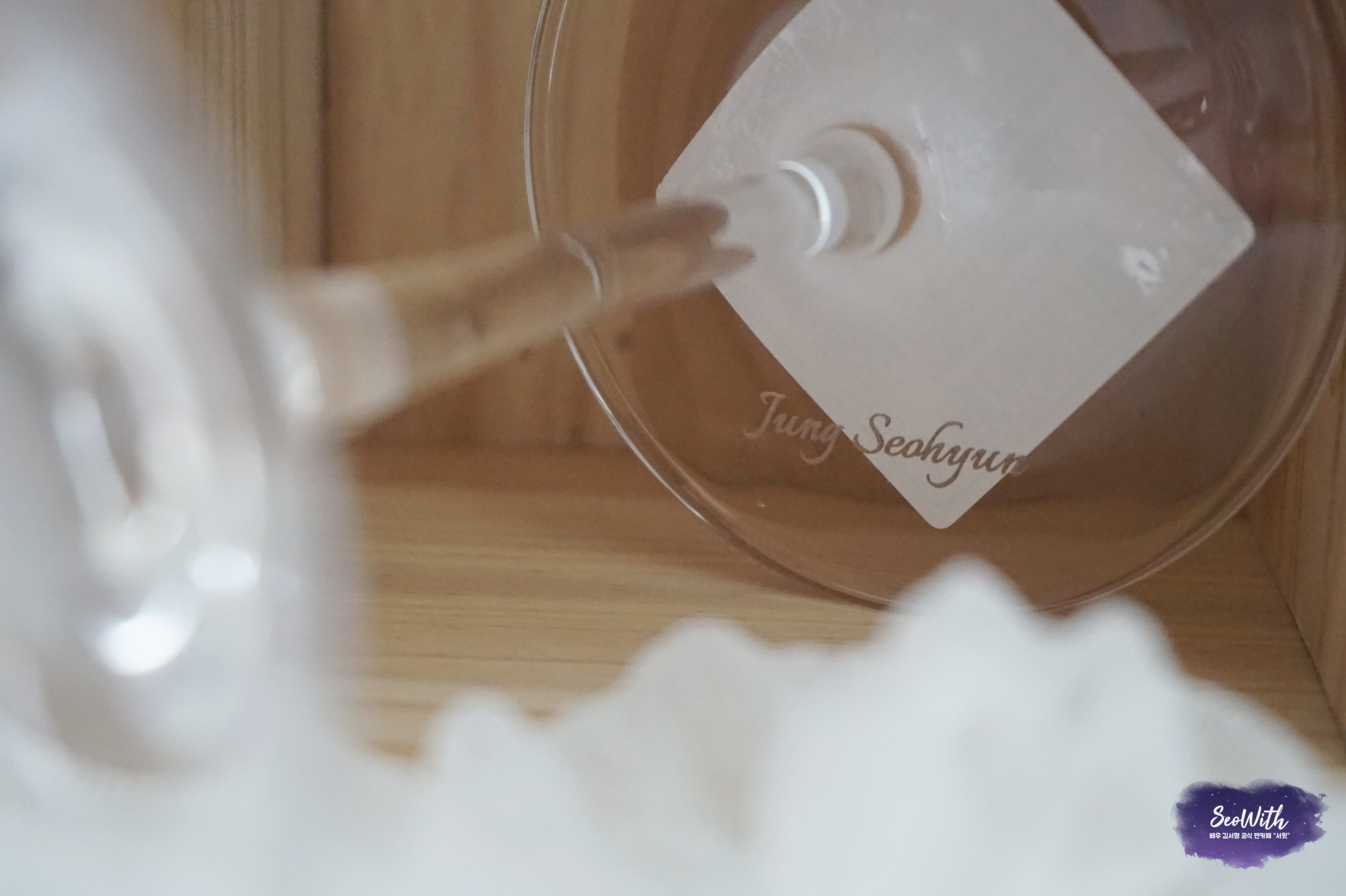 각 와인잔의 하단엔 'Kim Seohyung' 과 'Jung Seohyun' 이 각인하여