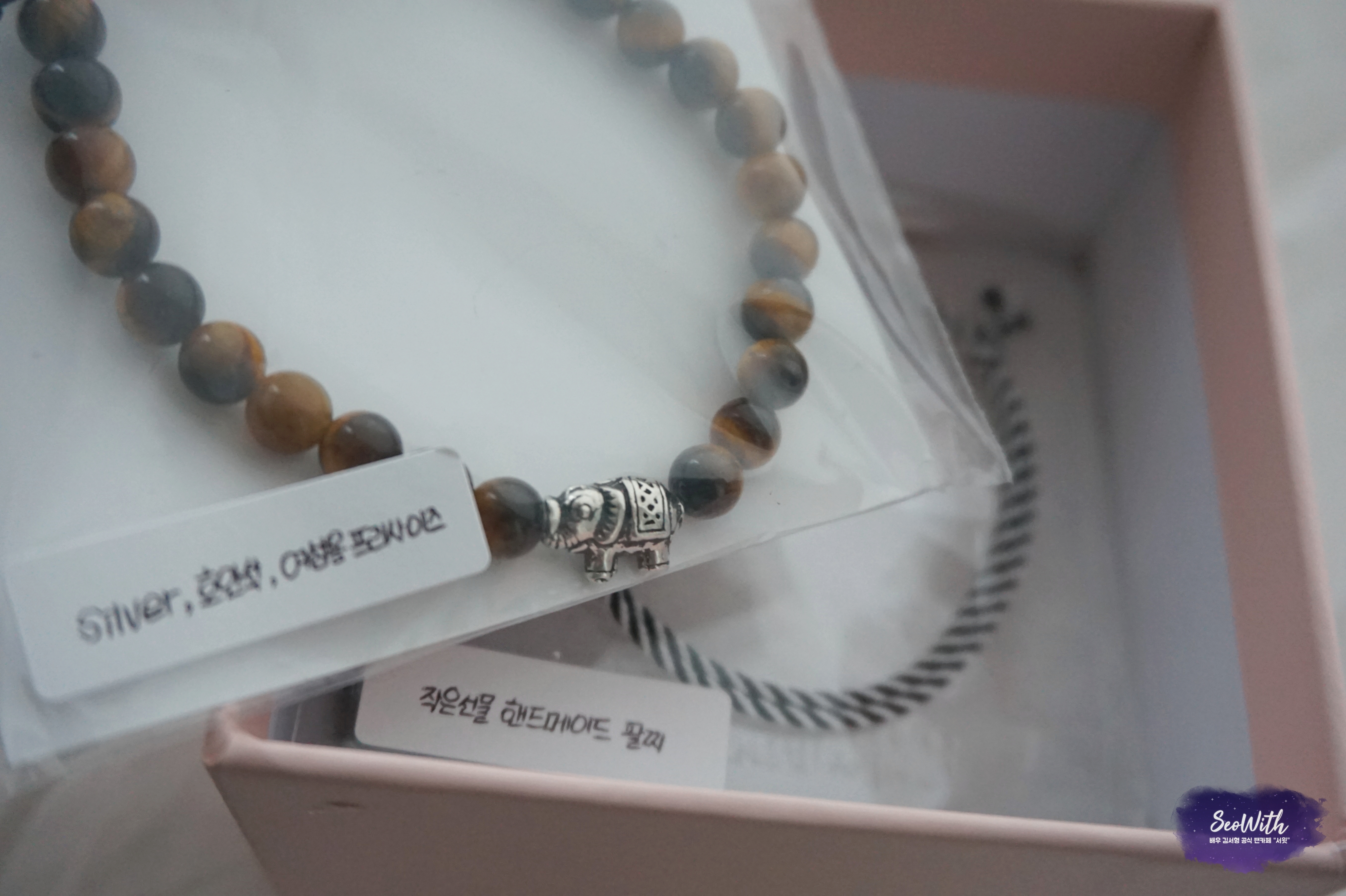 배우님의 평소 취향을 고려한 디자인의 코끼리 팔찌 선물입니다.