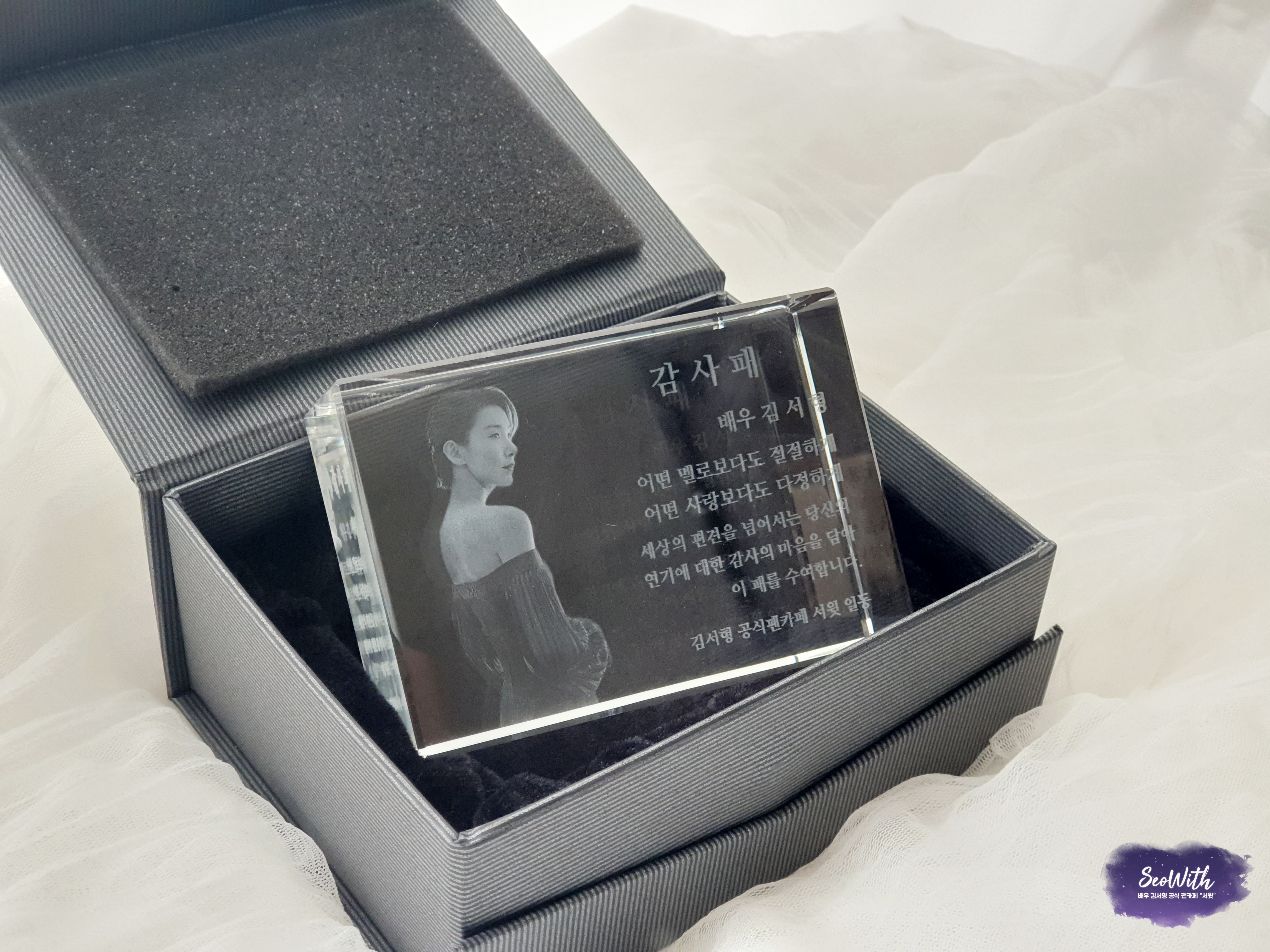 배우님의 이미지를 3D로 각인한 이 감사패는