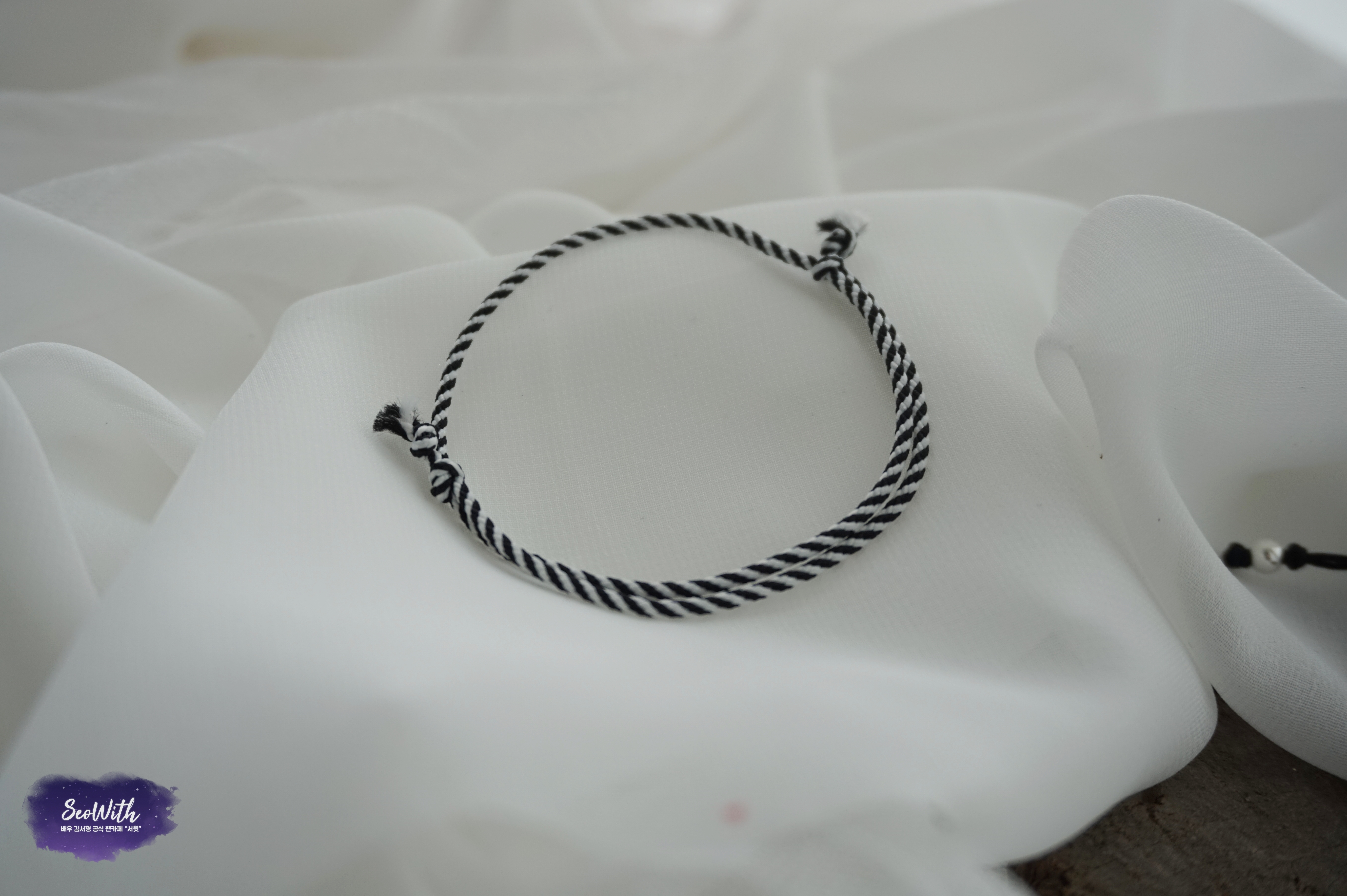 코끼리팔찌와 함께 레이어드하기에도 혹은 따로 착용하기에도 좋은 블랙앤화이트의 깔끔한 디자인입니다.