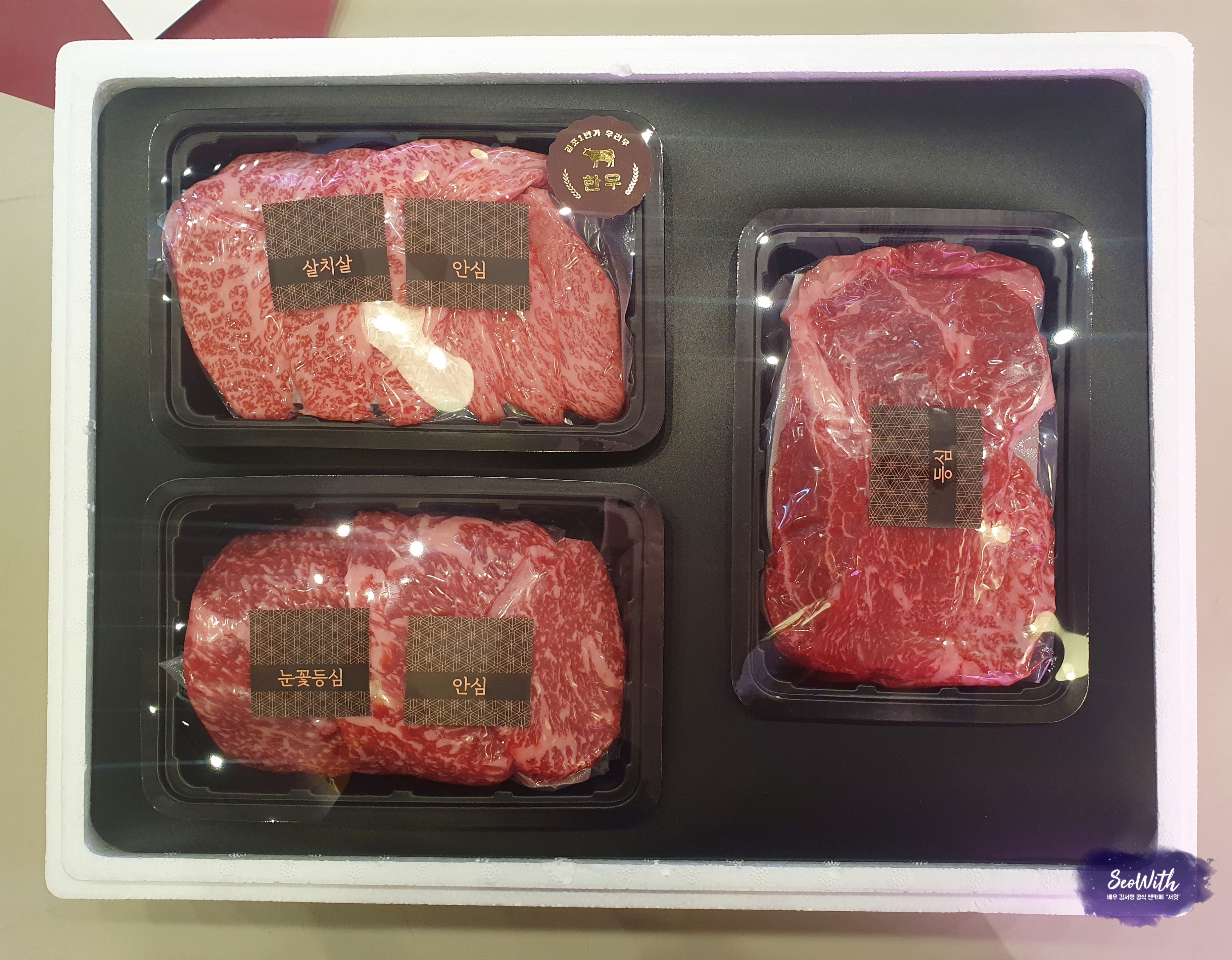 직접 보고 고른 1++ 한우로만 구성한 선물세트입니다.
