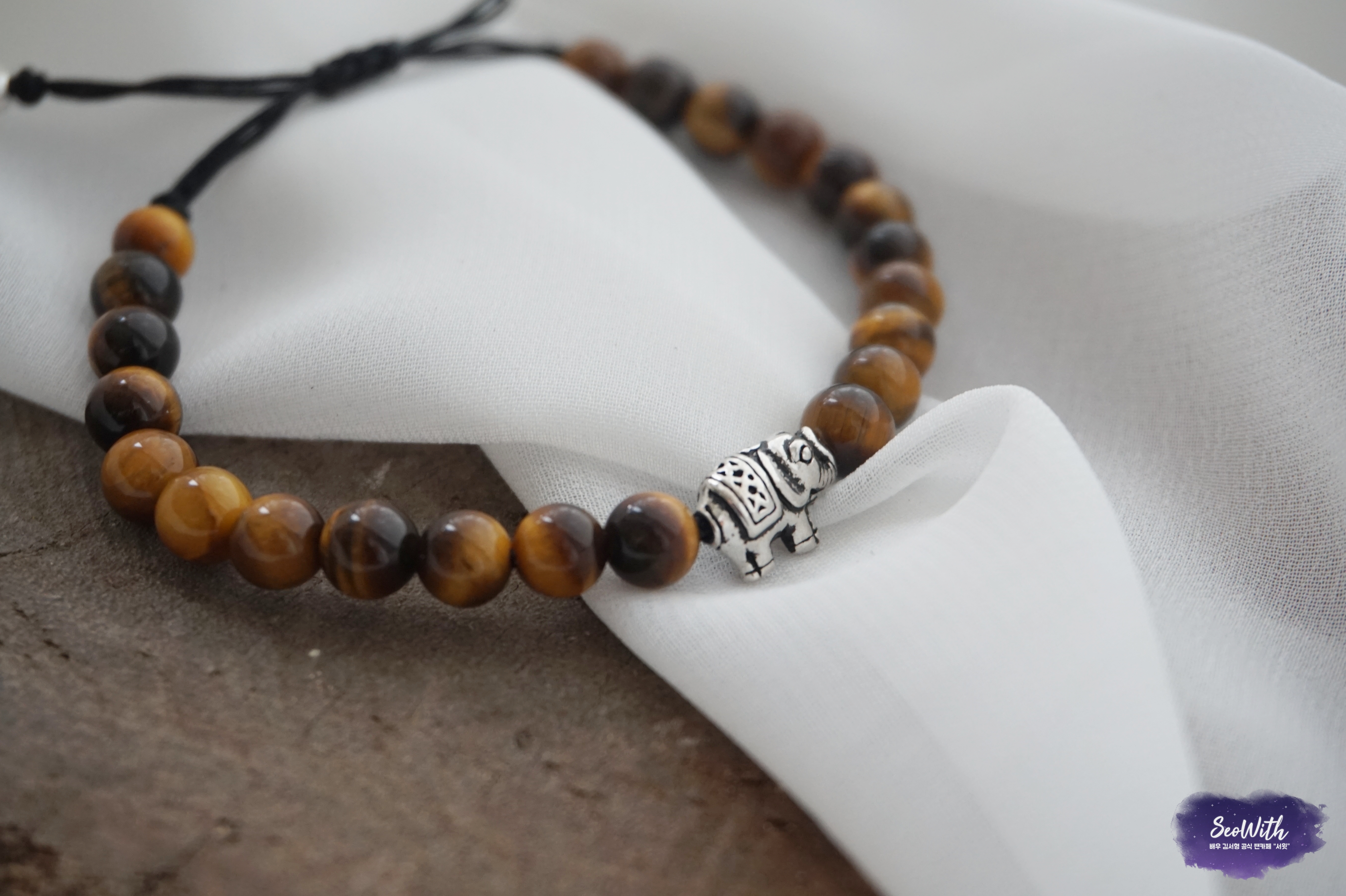 실버 코끼리 장식과 호안석 원석으로 제작된 핸드메이드 팔찌입니다.