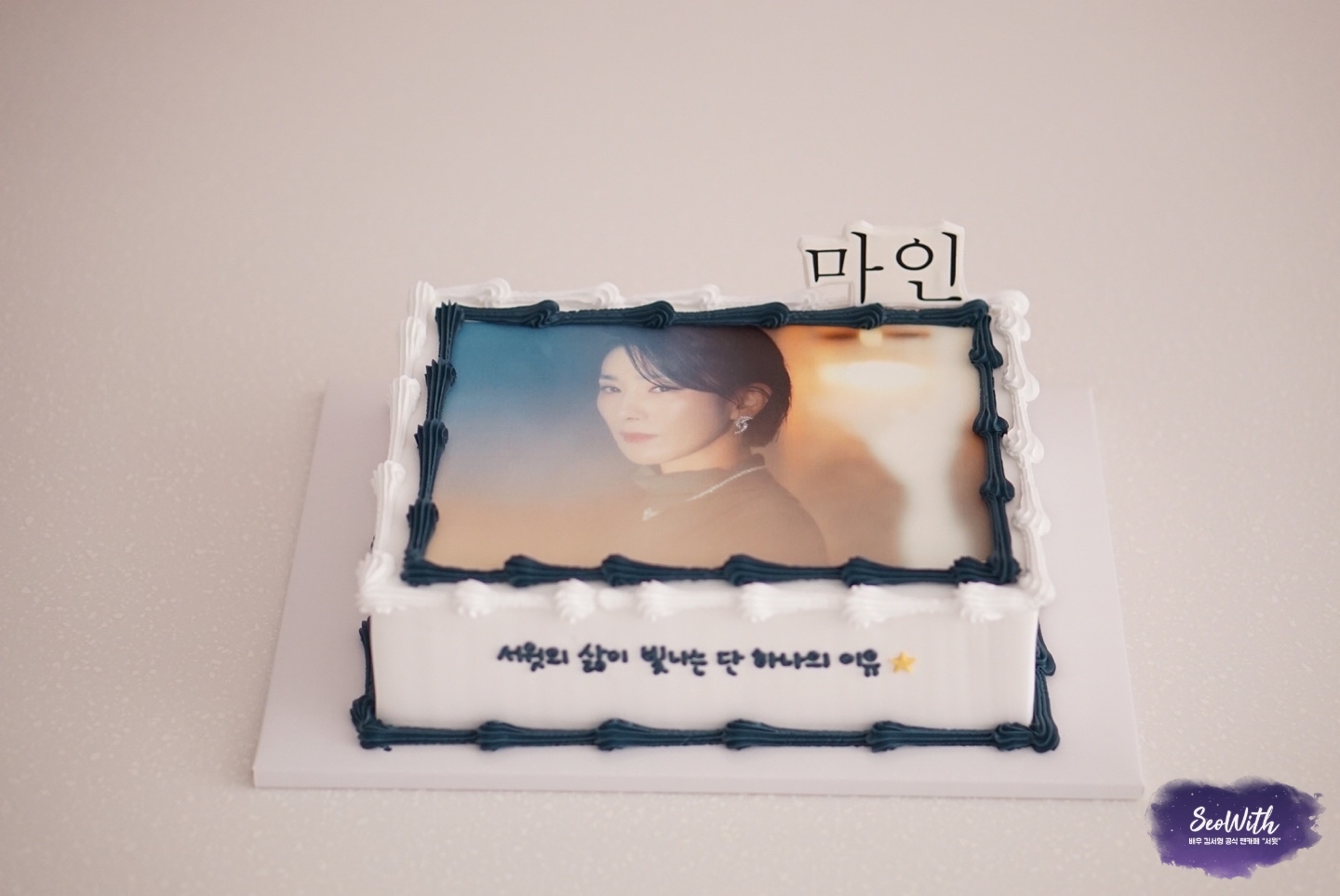 배우님의 얼굴이 크게 담긴 이미지로 케이크를 제작하였습니다.