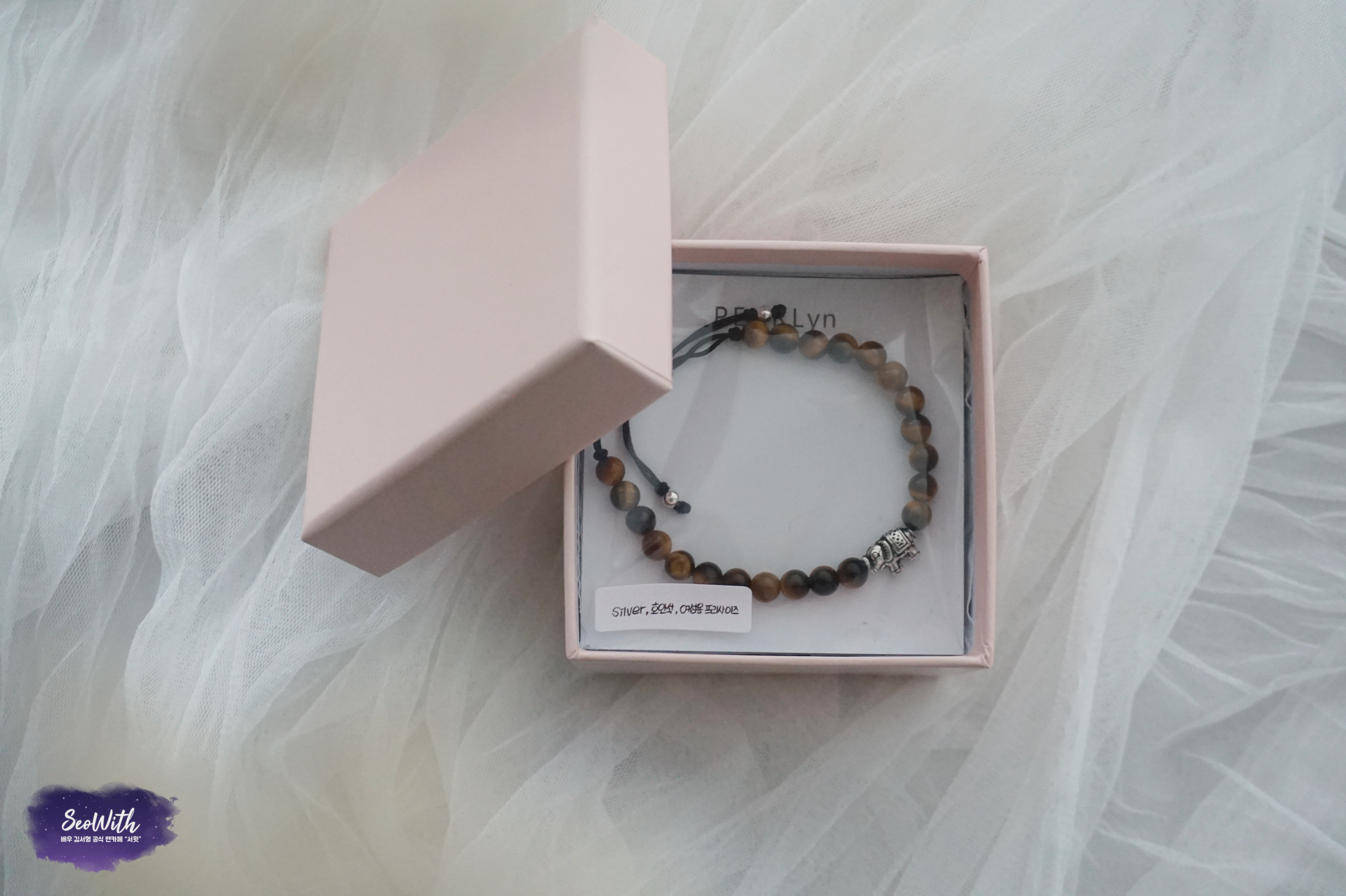 박스를 별도로 구매하여 팔찌 두개를 모두 넣어 포장 완료한 모습입니다.