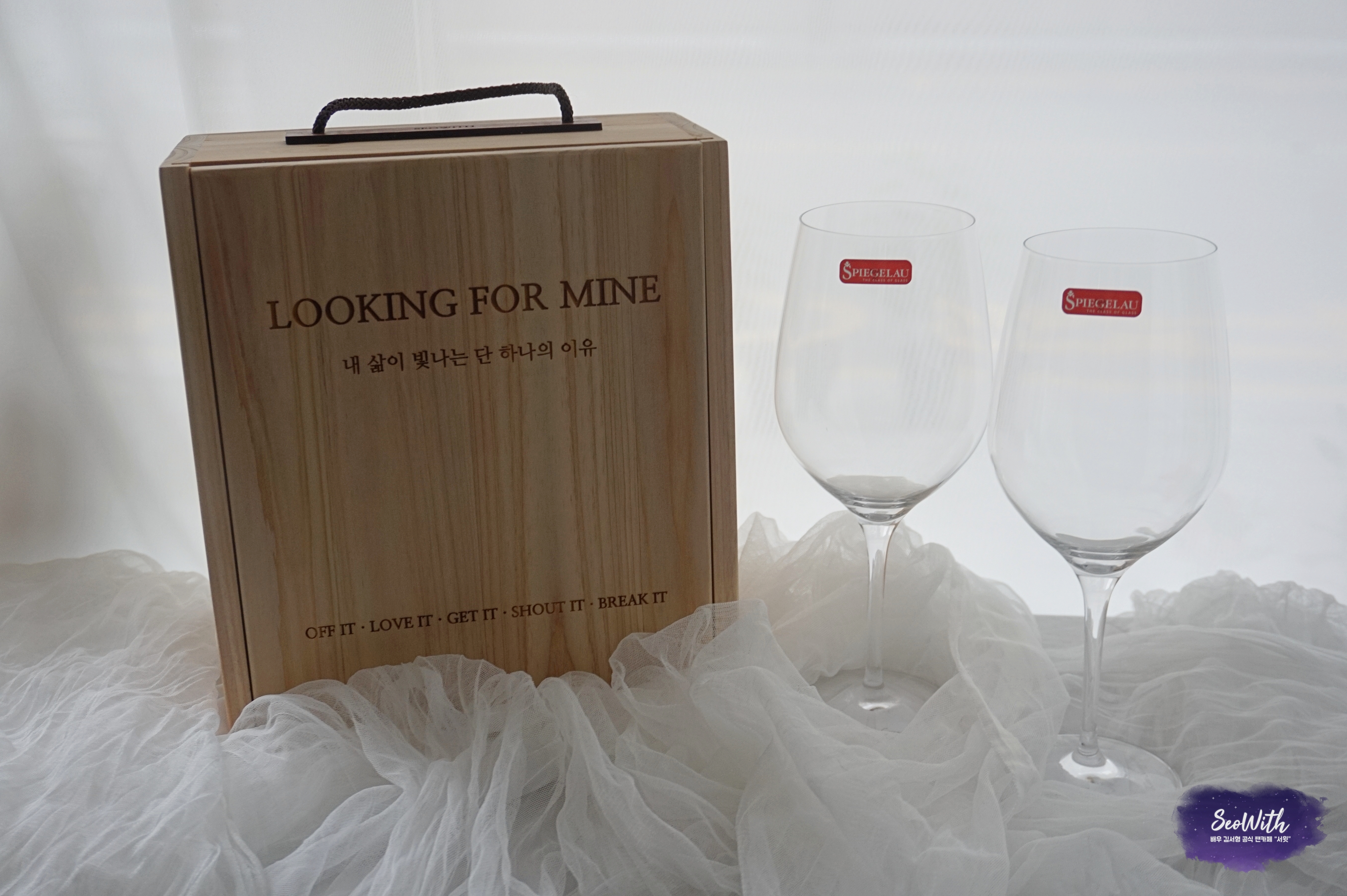 배우님께서 드라마 '마인'을 기념하실 수 있도록 준비된 와인잔 및 케이스입니다.