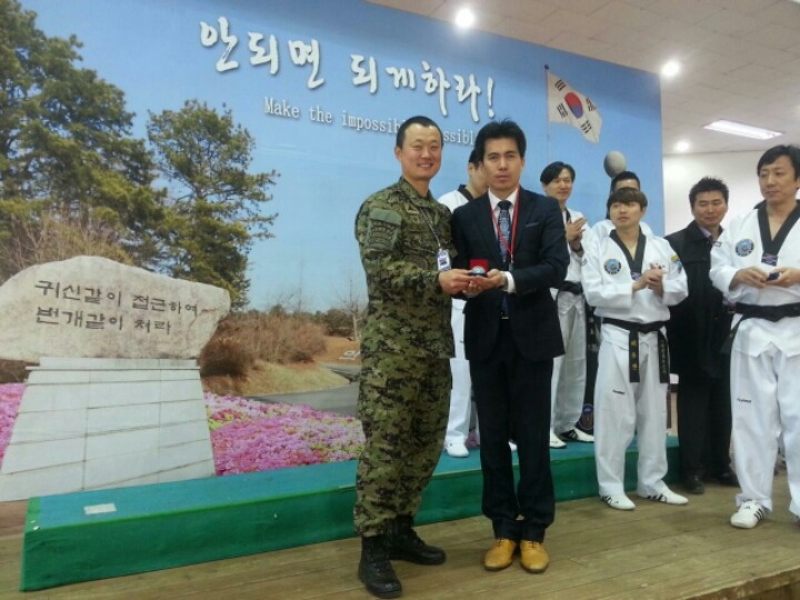 또한 특전사령부 태권도담당관 강동순 원사는 사범회 사범님들에게 부대기념코인을 선물했다.