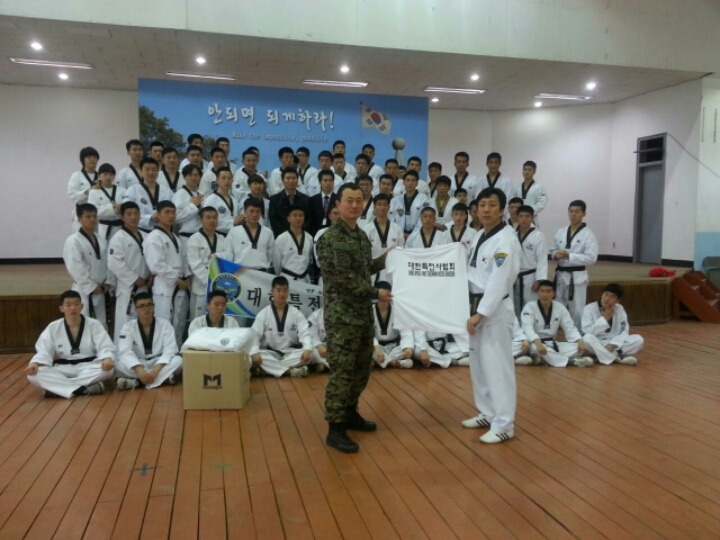 본 회는 특전사 심사관및 교관들에게 여름티셔츠와 심사용 빨강띠를 전달했다.