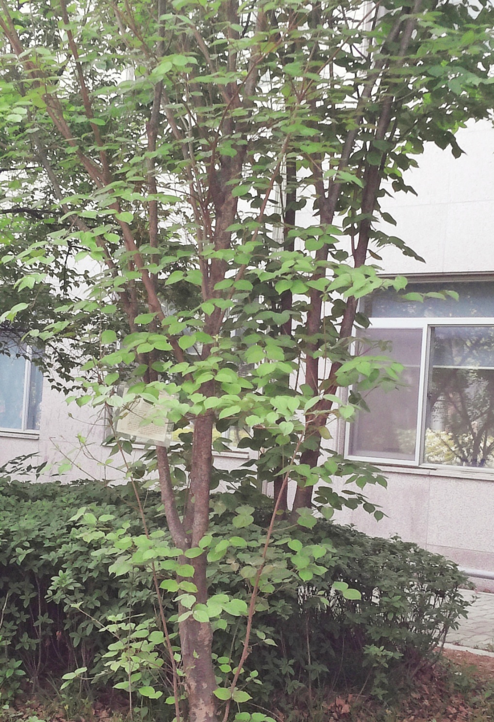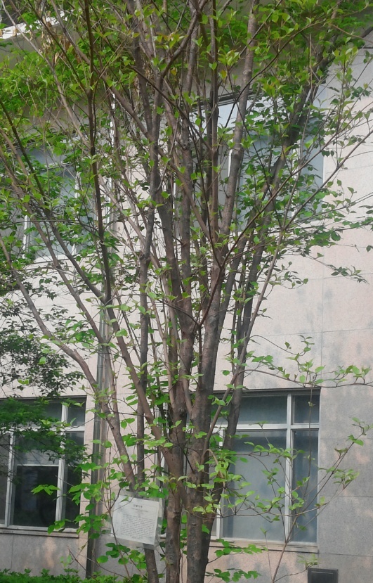 산딸나무를 한 학기 동안 관찰하게 되었다. 옆의 매실나무 꽃(매화)은 많이 피었는데