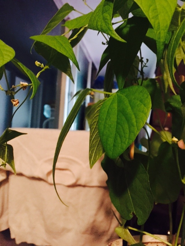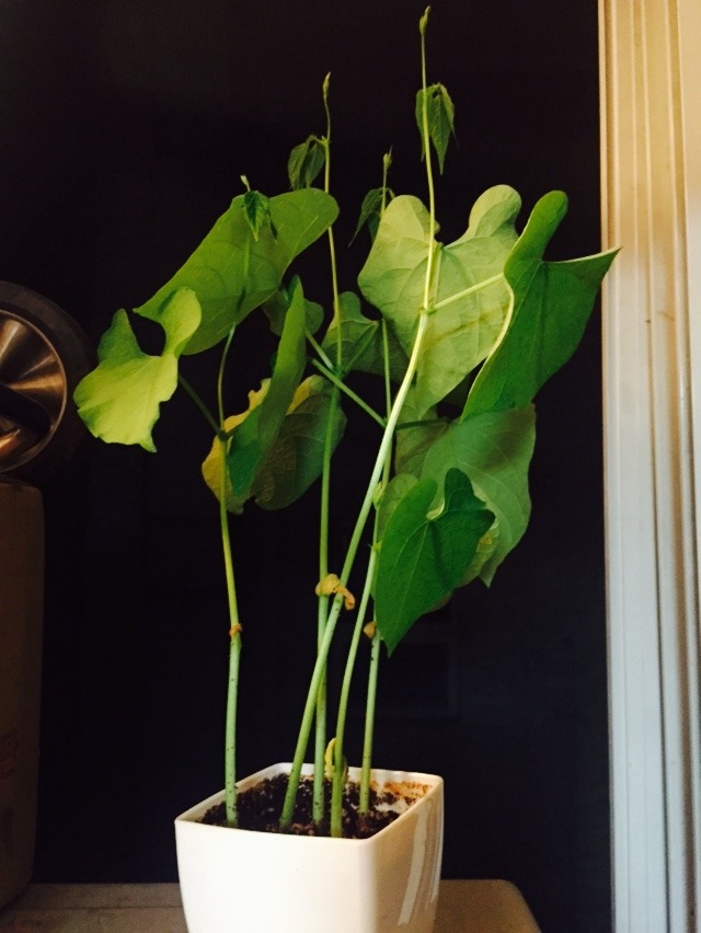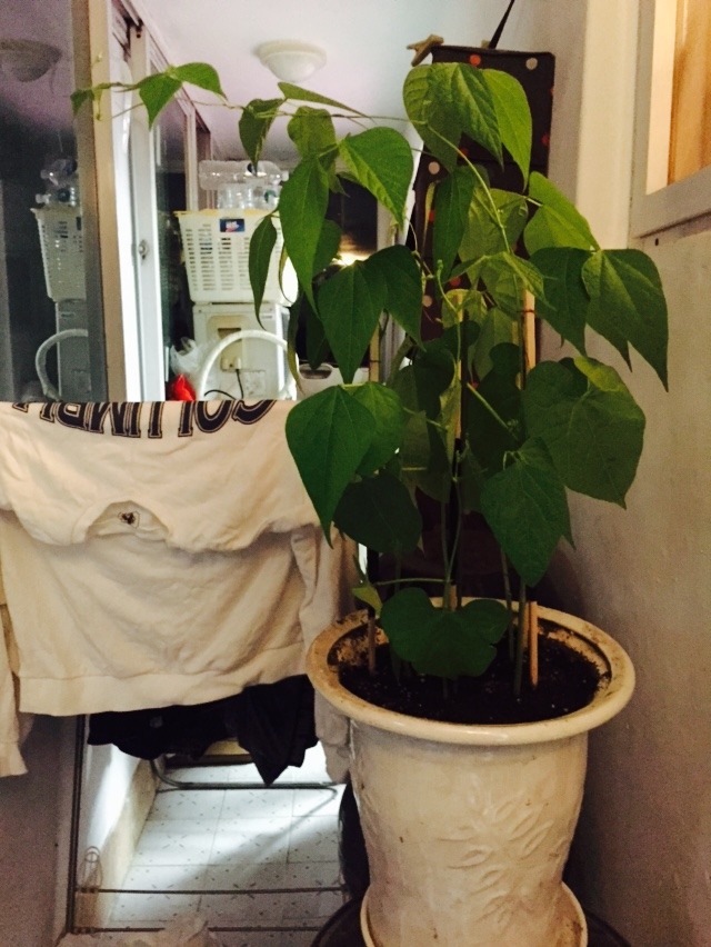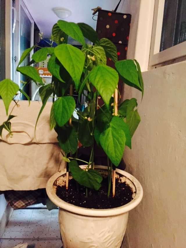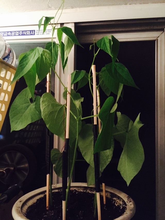 너무 잘 자란다. 초반보다 줄기가 가늘어진 것 을 보아 흙에 양분이 많이 없긴 한가보다. 키는 너무 많이 자라서 천장에 닿을까 걱정이 된다. 줄기 중간에 매달려 있던 콩 모양의 잎은 점점 시들어 갔다. 잎의 크기는 1주 전에 비해서 20배는 커진 것 같다. 점점 위로 올라가서 힘이 없을까 걱정된다. 게다가 저번주에는 보이지 않던 줄기가 하나 더 나와 총 5개의 강낭콩이 자라고 있다.