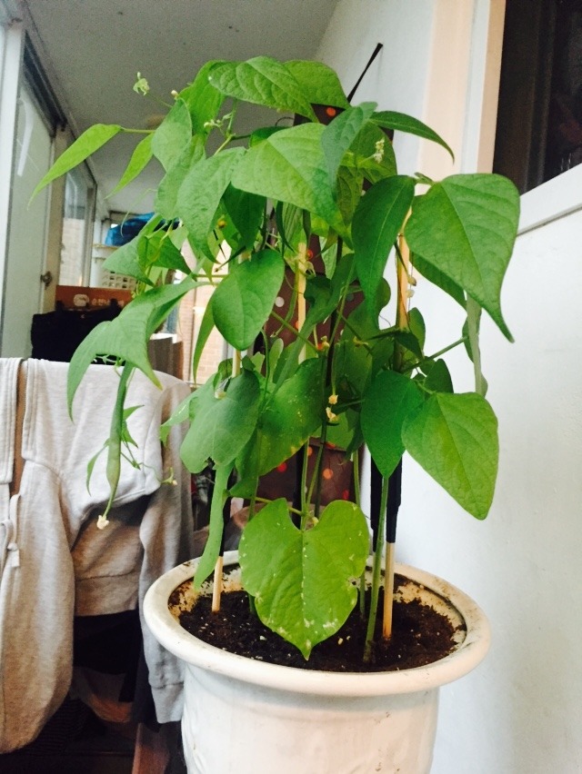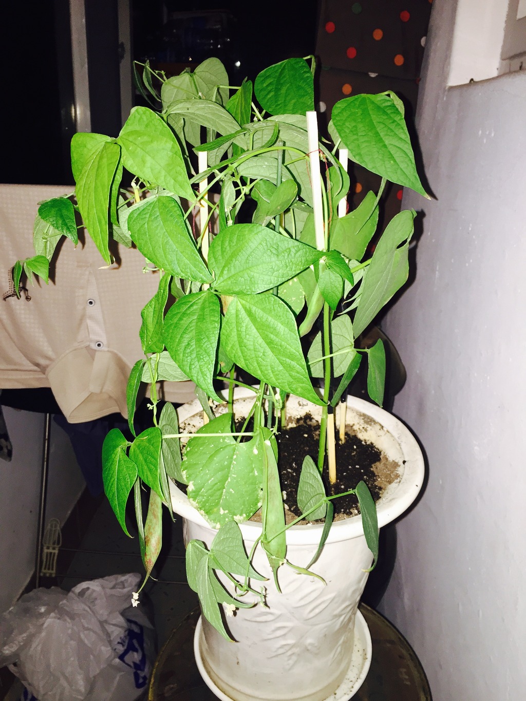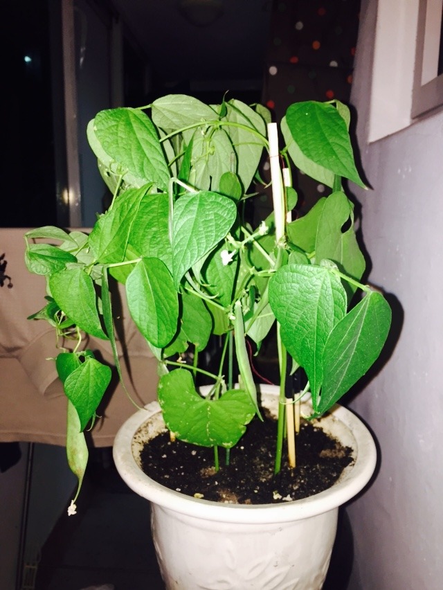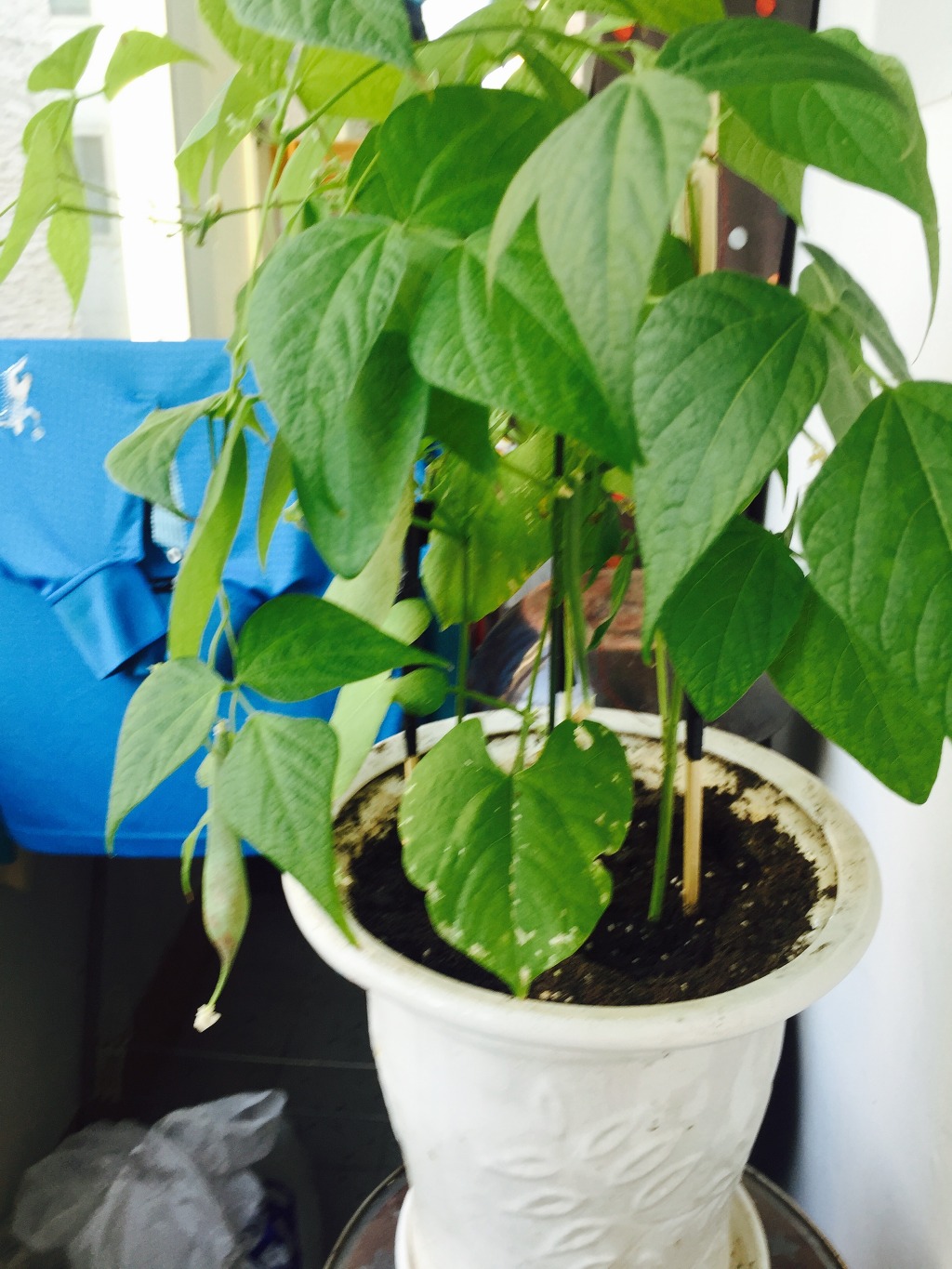 꽃이 피었던 자리에 강낭콩이 달렸다. 크기도 제법 컸다. 꽃이 피어났던 자리에 거의 모두 강낭콩이 달렸는데, 정말 기뻤다. 강낭콩 끝에는 아직 지지 않은 꽃이 달려있었다. 콩깍지가 거의 줄기만큼 얇은 것도 있었다. 잎은 뭐가 문제인지 흰색 반점이 생겨났다. 전부다 그런건 아니였는데, 잎 두 세개가 흰색 반점이 나타나서 물은 너무 많이 줘서 그런건지 하는 의문이 들었다. 앞으로는 너무 물을 자주 주지 않고 흙이 마르면 줘야겠다.