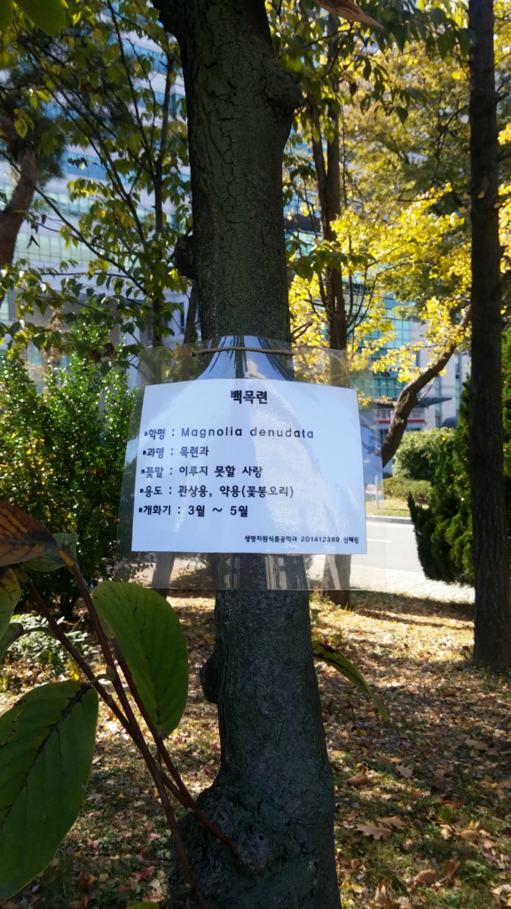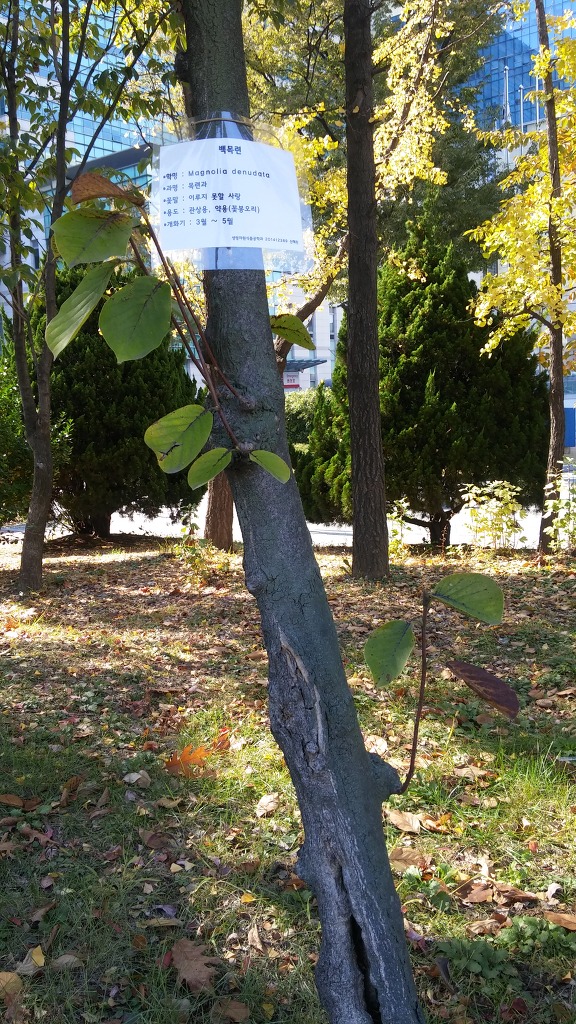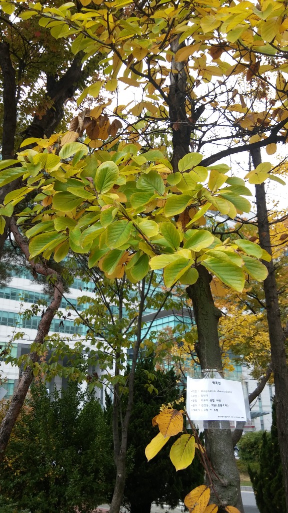 기온은 쌀쌀해지고 볕은 따뜻한 가을 날씨였는데 백목련 나무는 기온에 매우 민감하지 않음을 알 수 있었다. 전체가 아닌 잎 끝부분에 갈색으로 살짝씩 말라있는 모습을 볼 수 있었다.